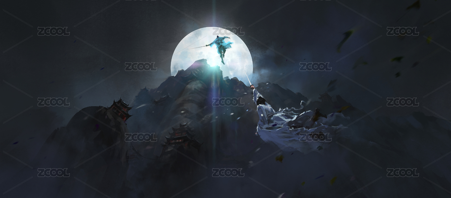外星追踪器在沙漠里追逐人类,数码绘画。