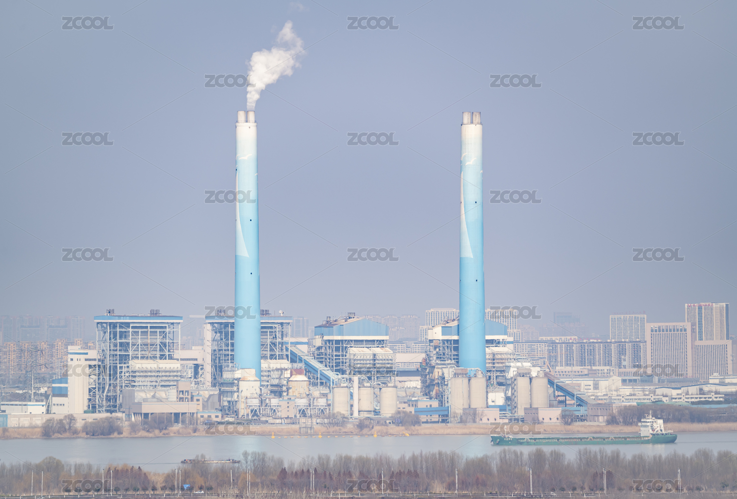雾霾天气里的大型火力发电厂