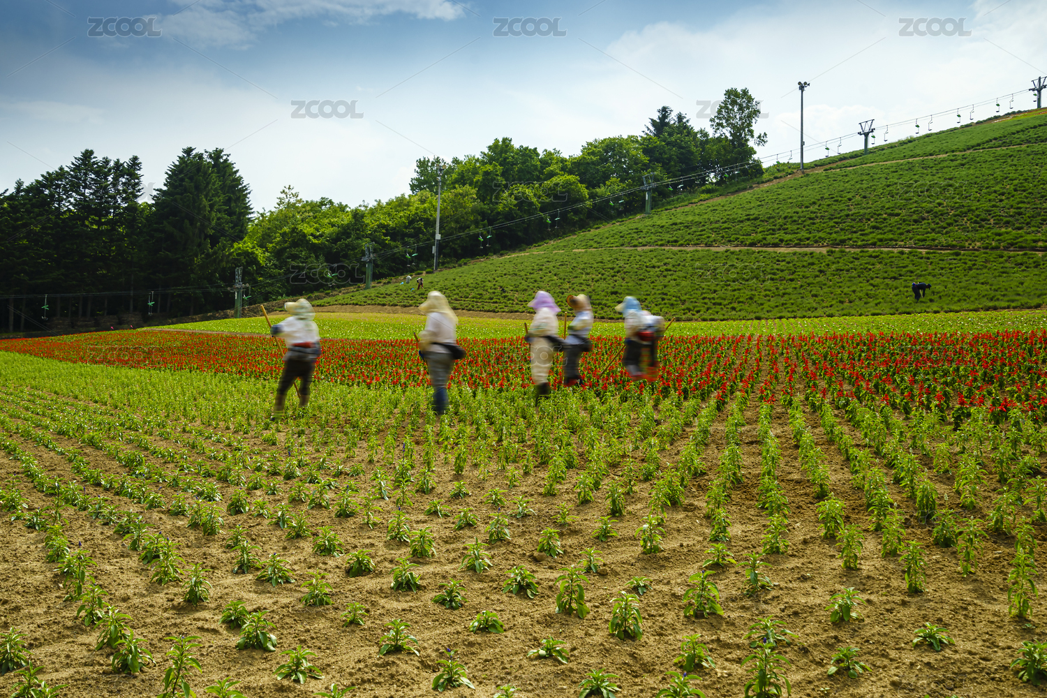 日本北海道美瑛町四季彩之丘花田中的鸡冠花