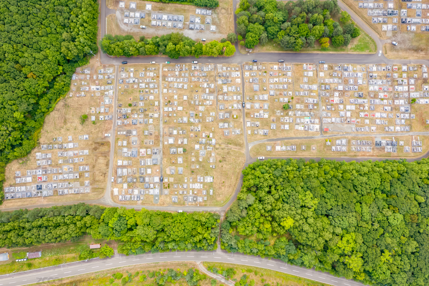 日本北海道富良野日式公墓航拍正上方视角