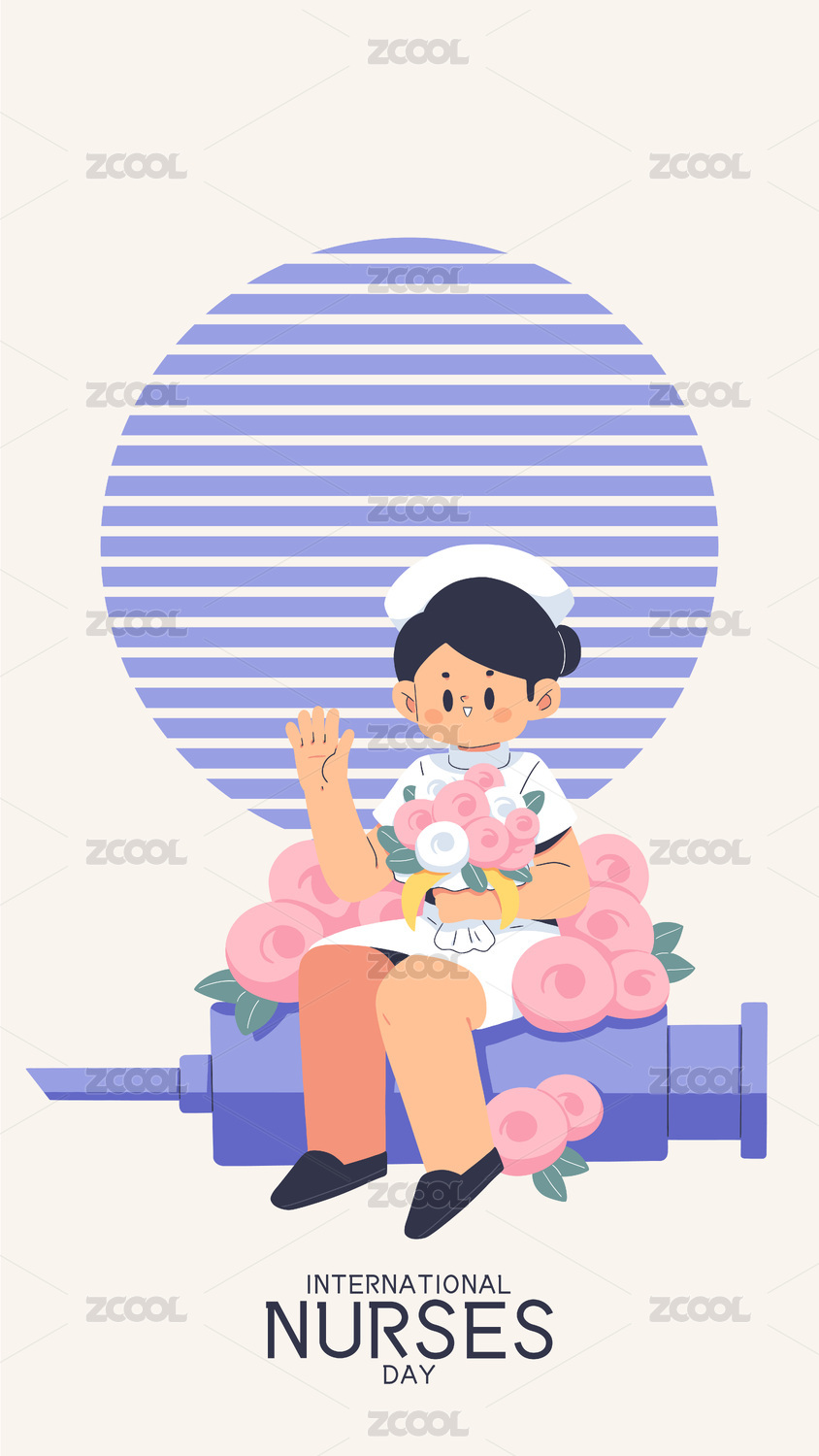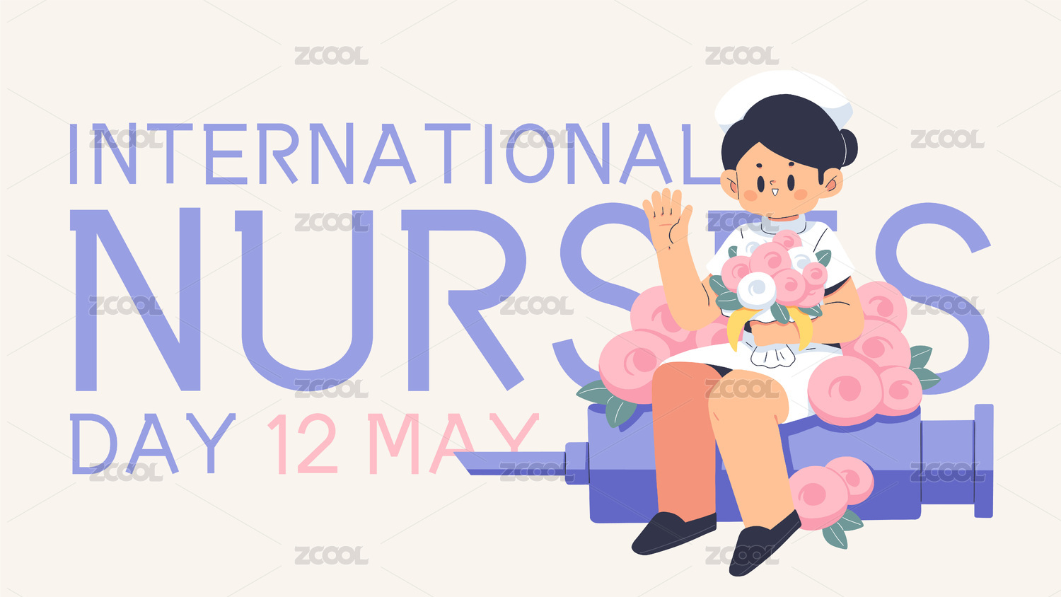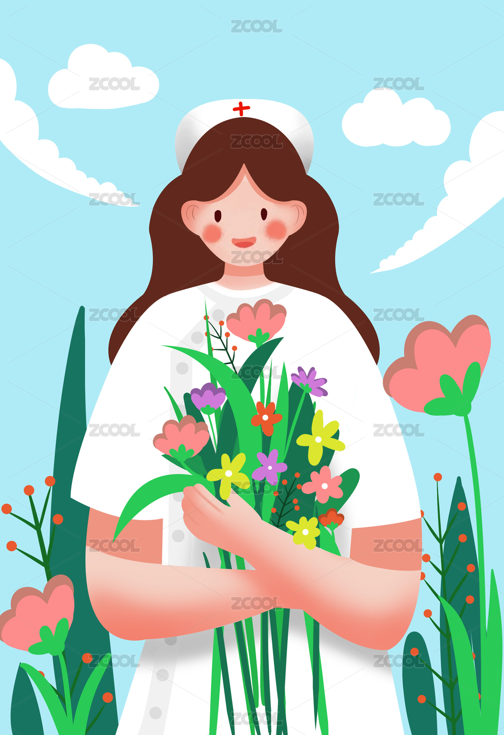 手捧鲜花的白衣天使庆祝国际护士节的矢量海