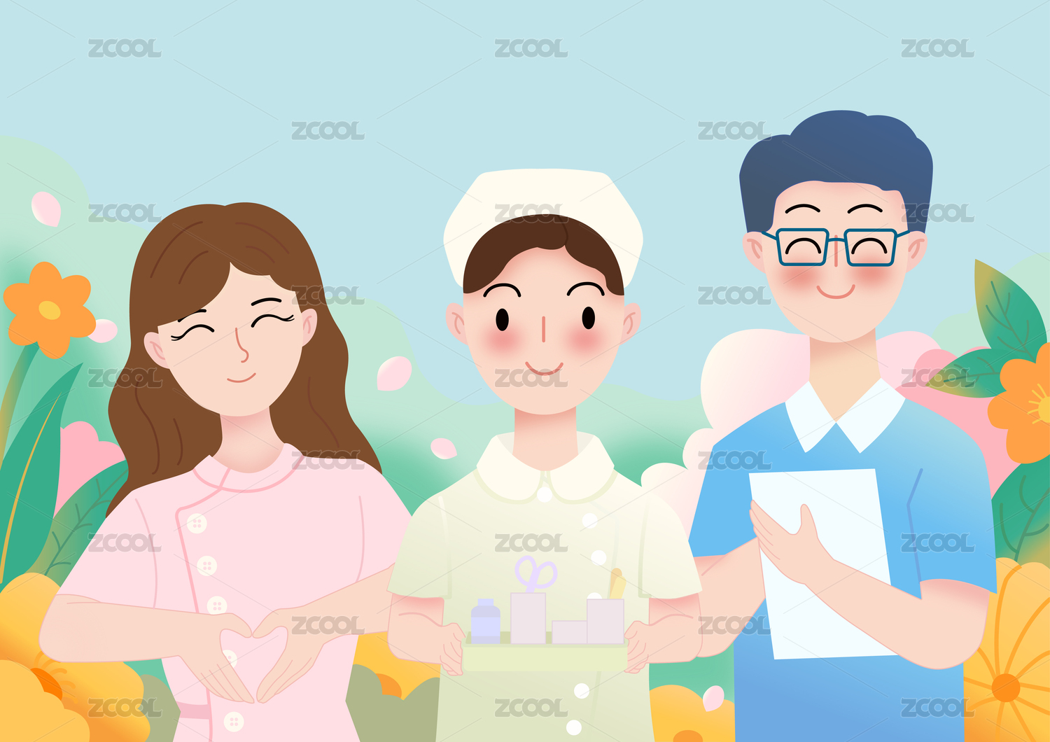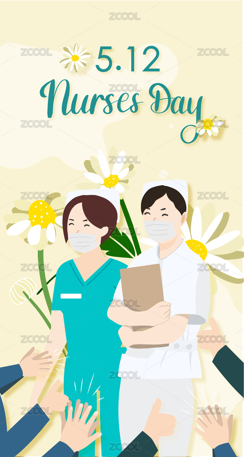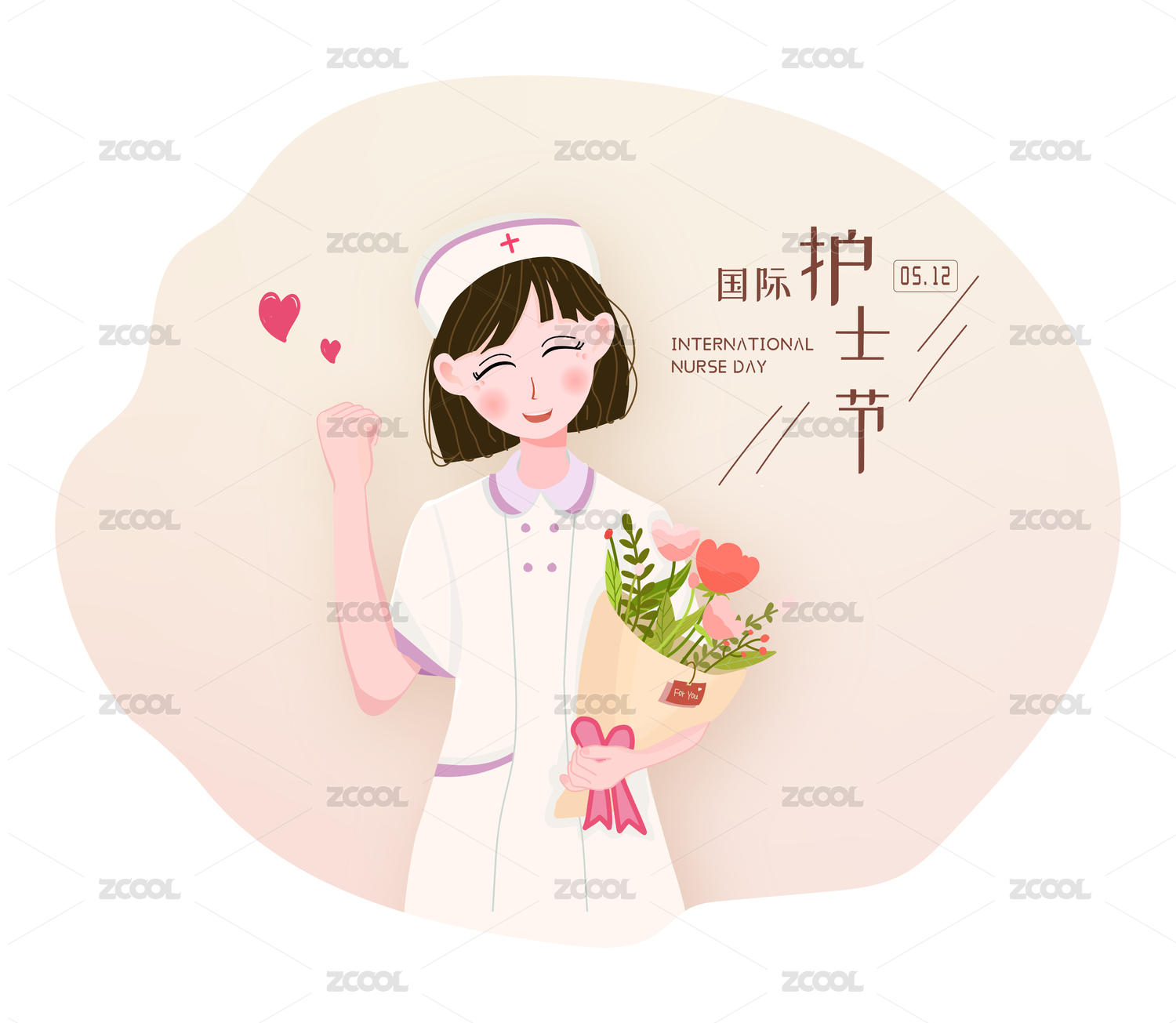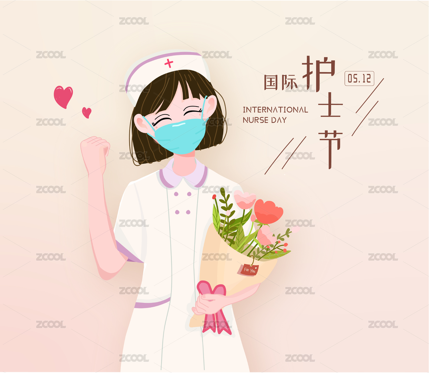 手捧鲜花的白衣天使庆祝国际护士节的矢量海