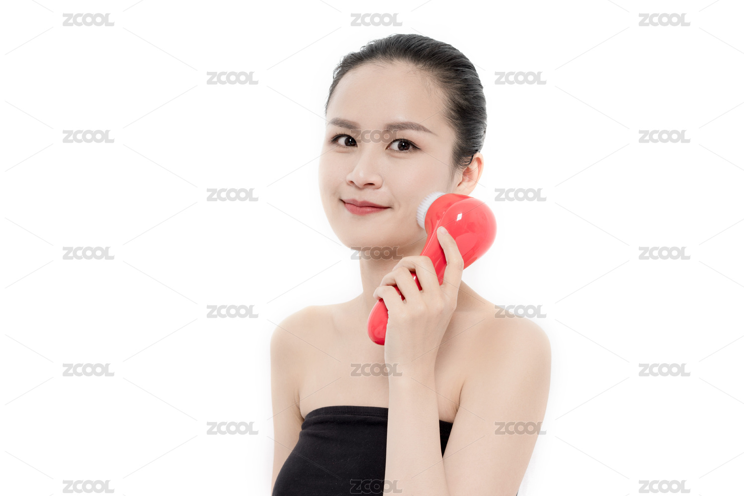 用洁面仪洗脸的年轻女性