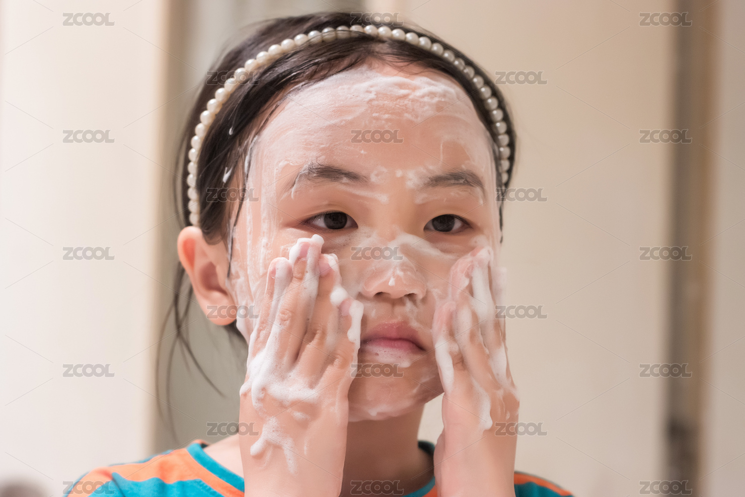 正在洗脸的亚洲小女孩