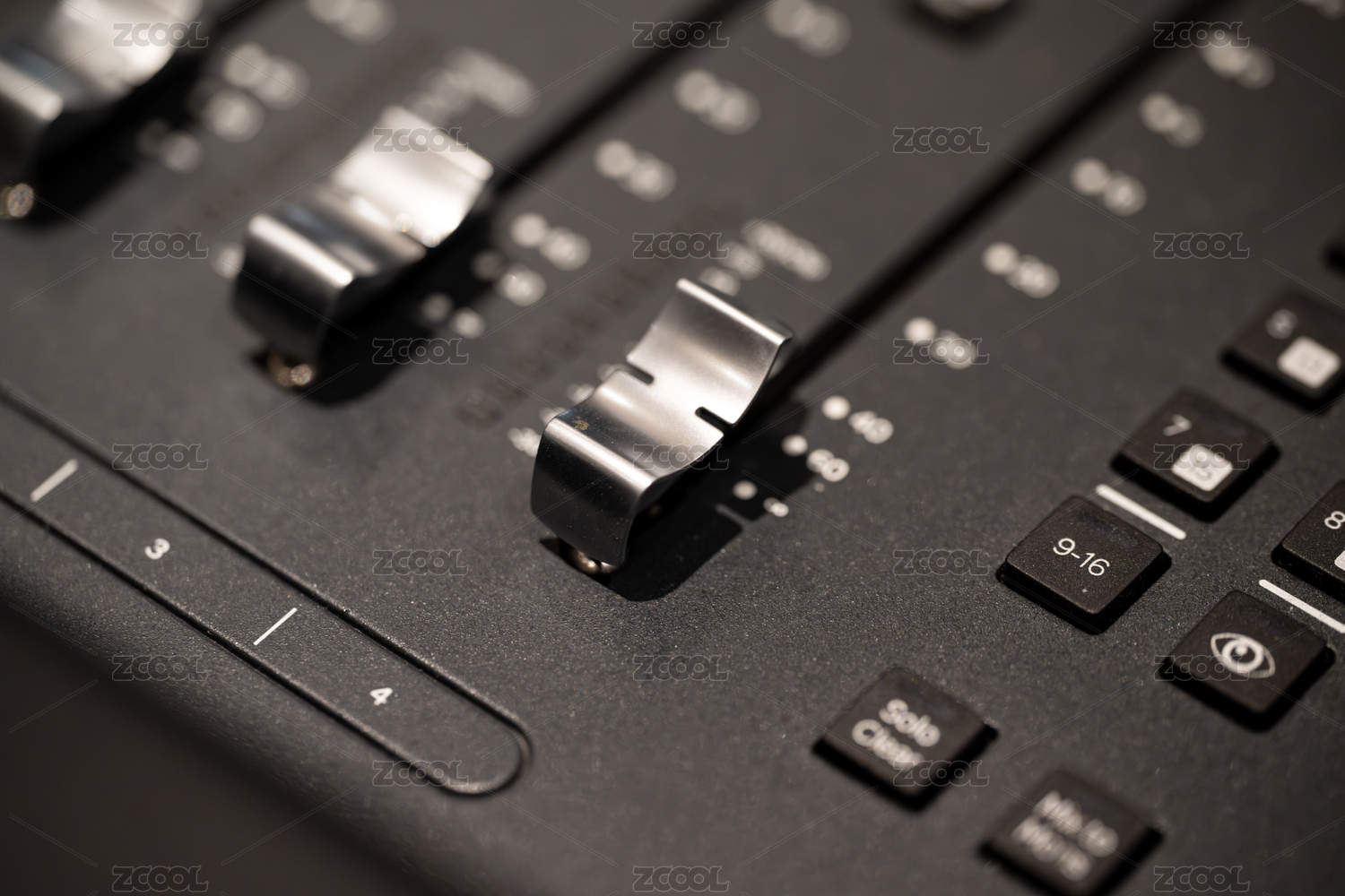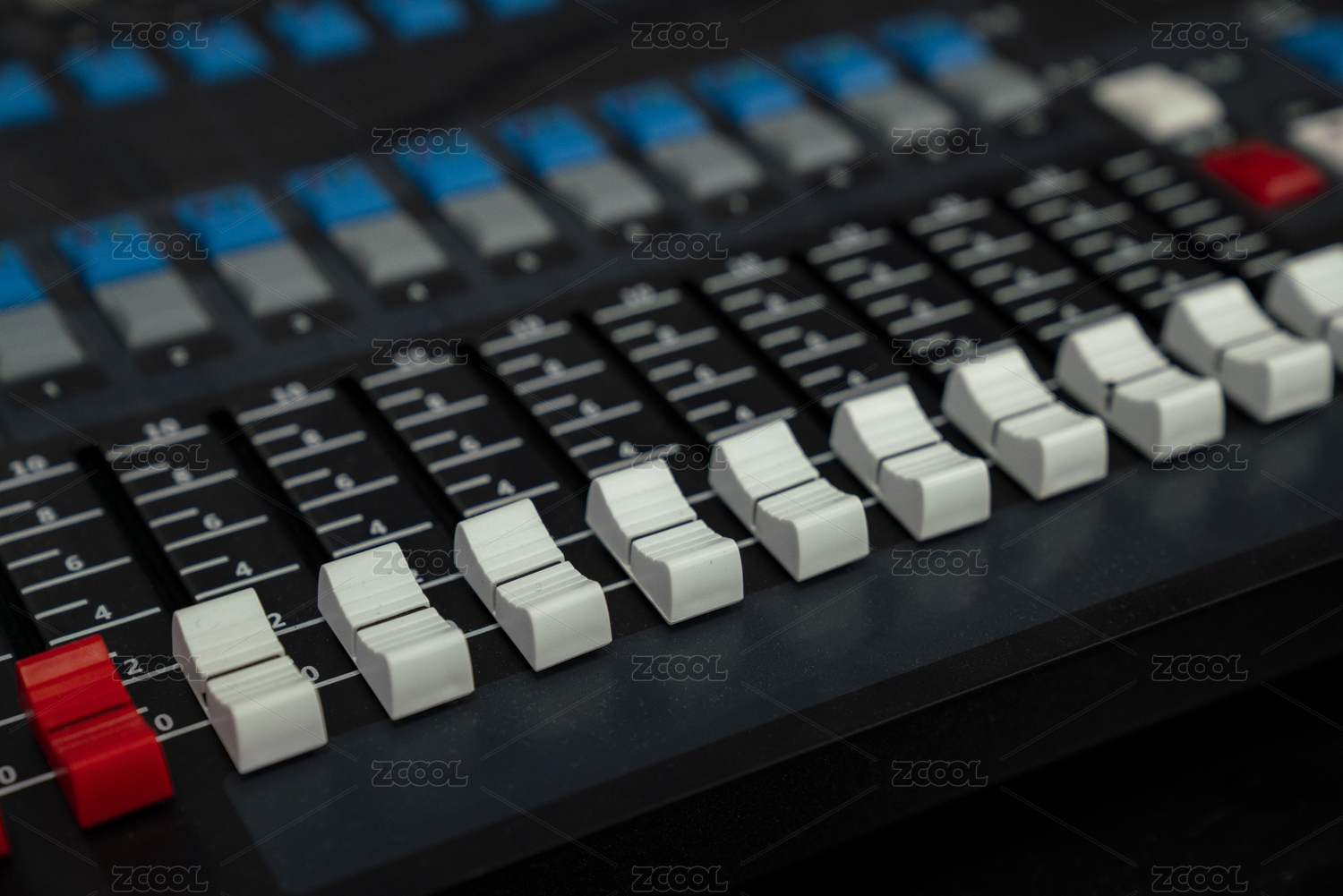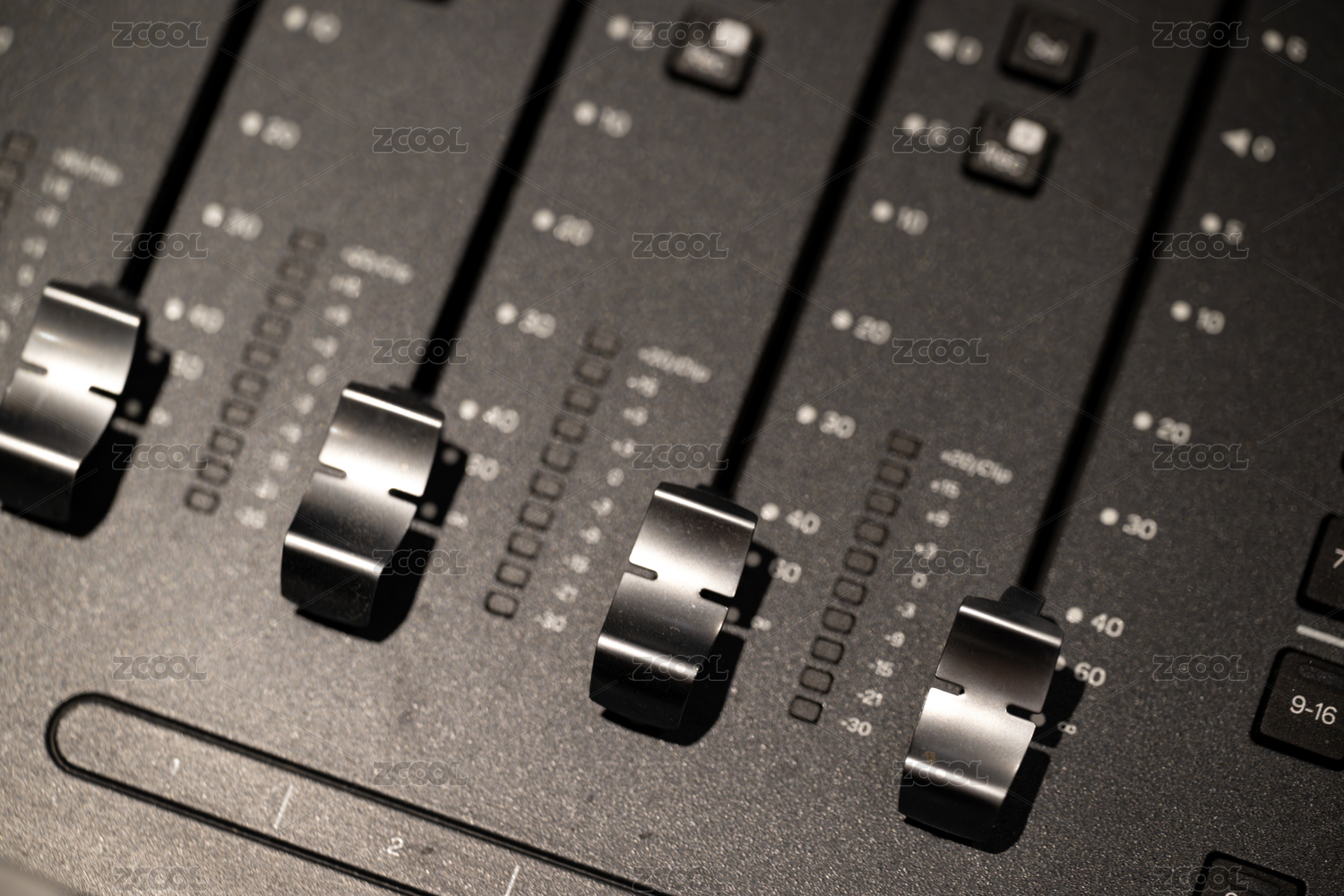音频混音台的滑动推子特写