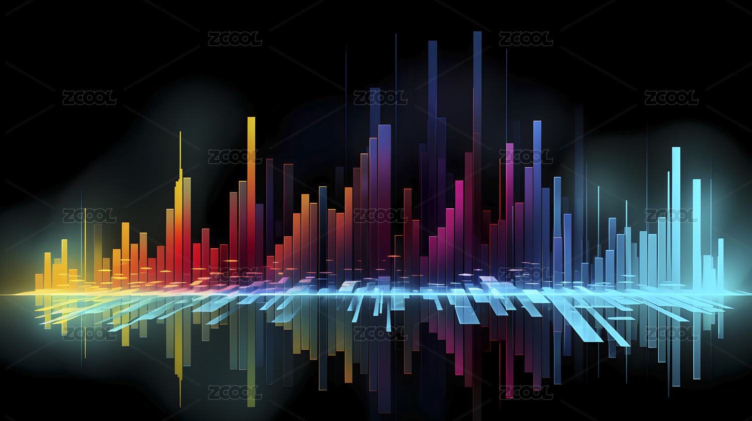黑背景下的多彩创意音频共振图案