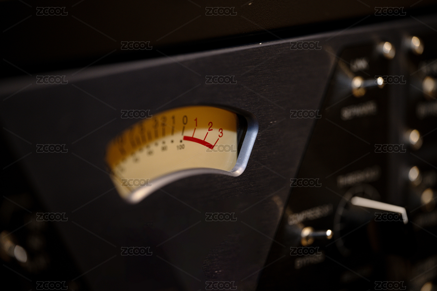 复古音频设备上的指针式电平表特写