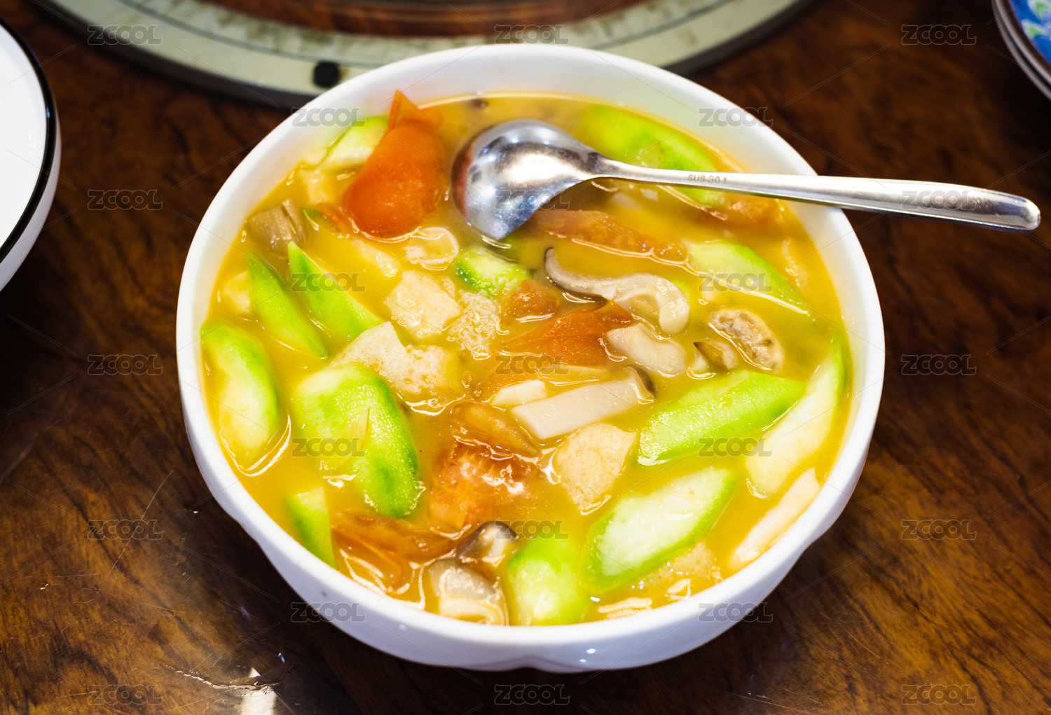 中国贵州特色菜丝瓜三鲜汤观赏图