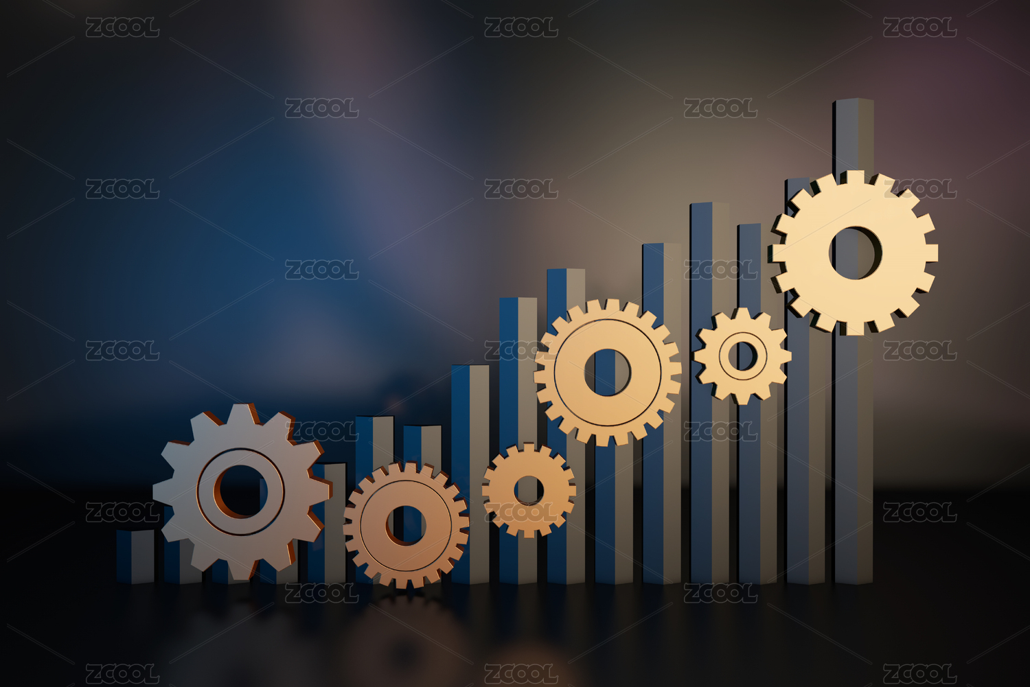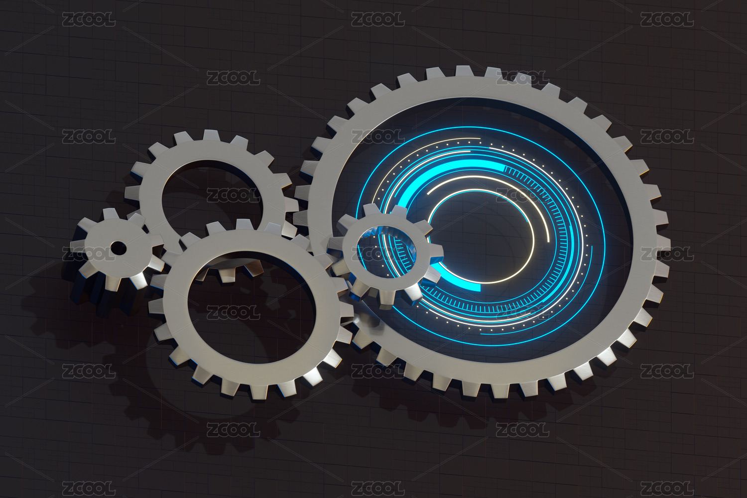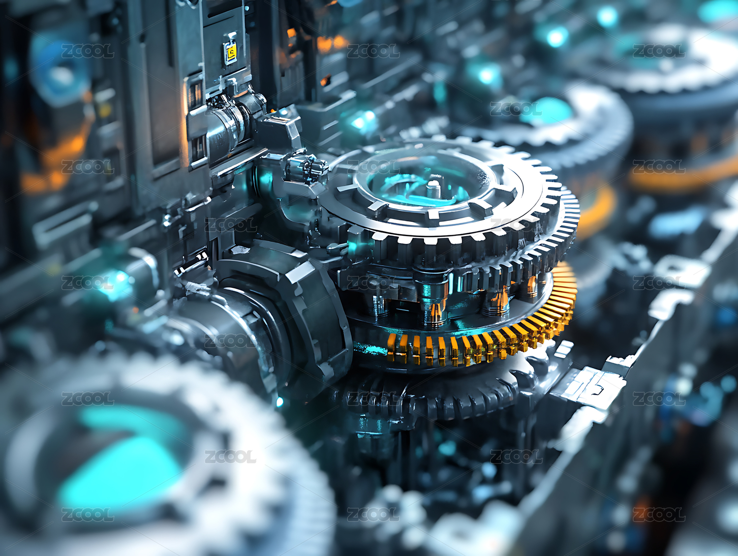 工业科技感齿轮与机械结构背景 三维渲染