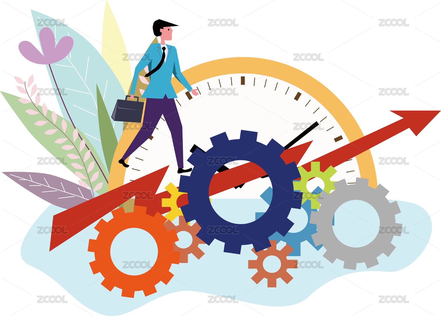 企业改革行动时间,白底背景商务人士在齿轮和箭头的指标上