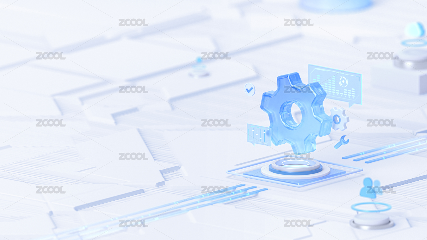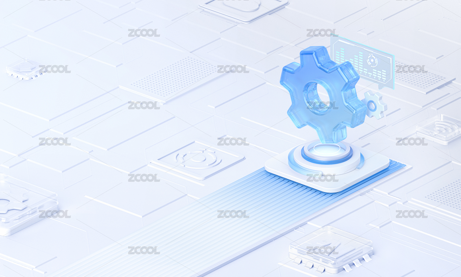 科技蓝白功能设置齿轮智能概念场景3D渲染