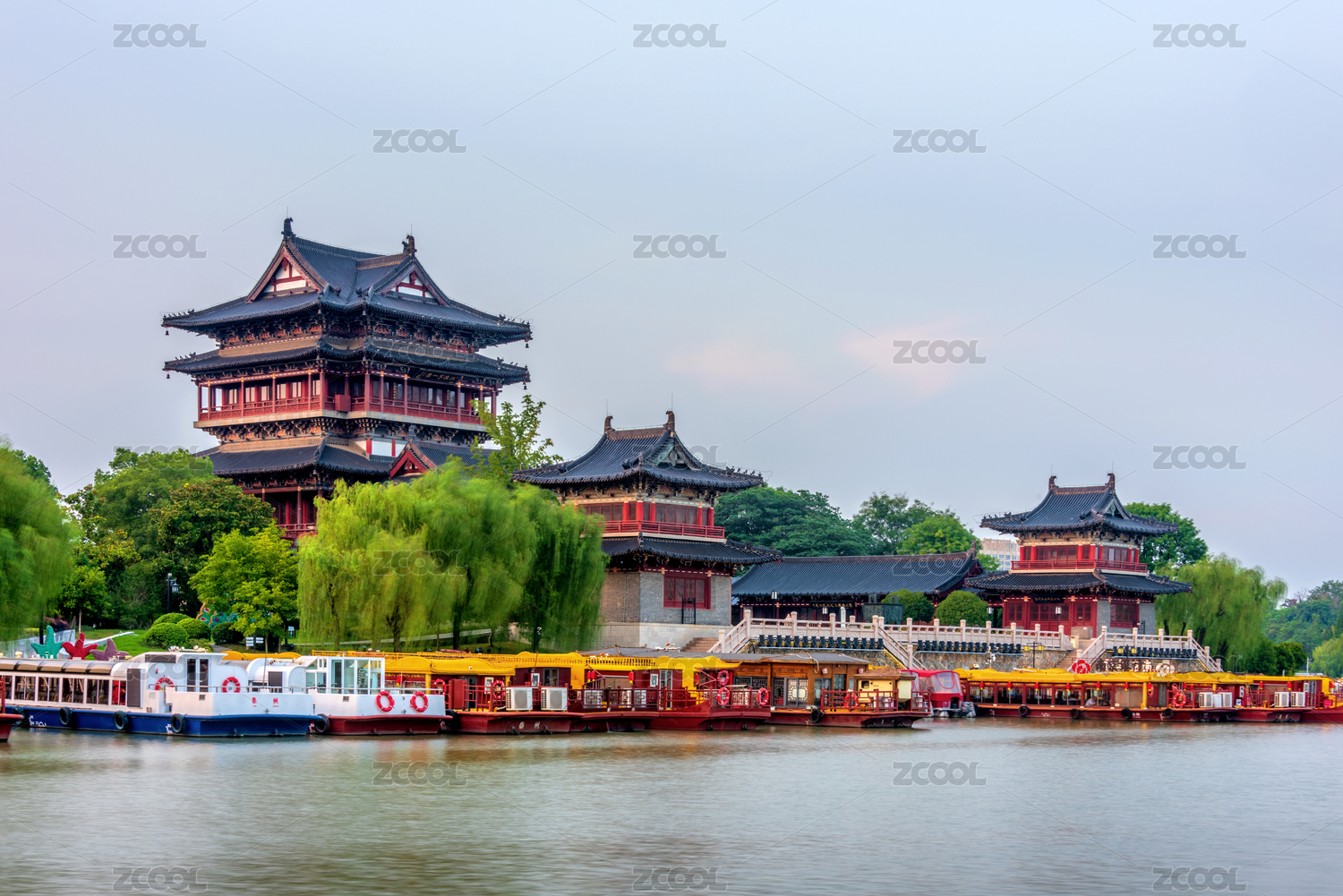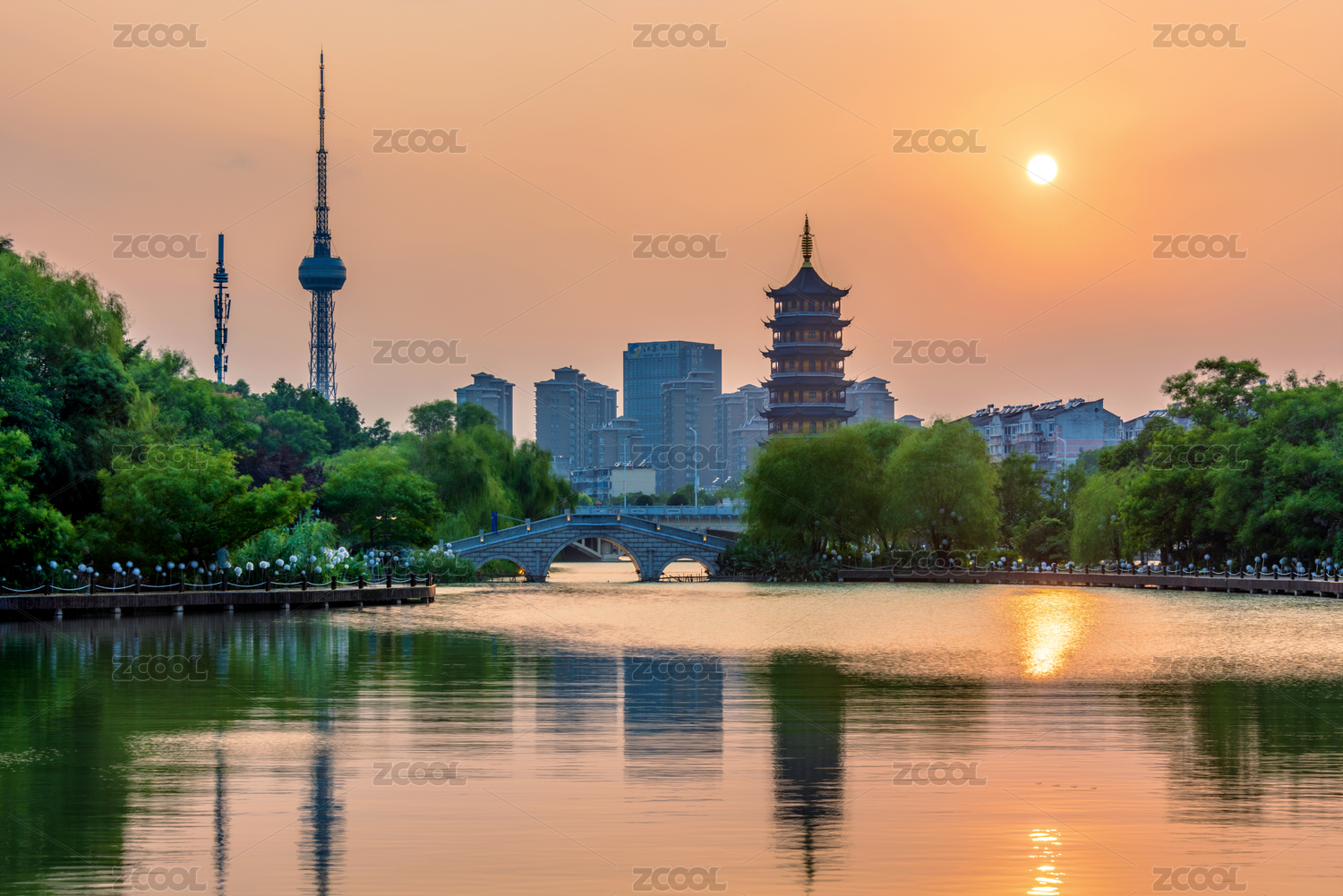 中国江苏泰州凤城河景区文峰塔日暮风光