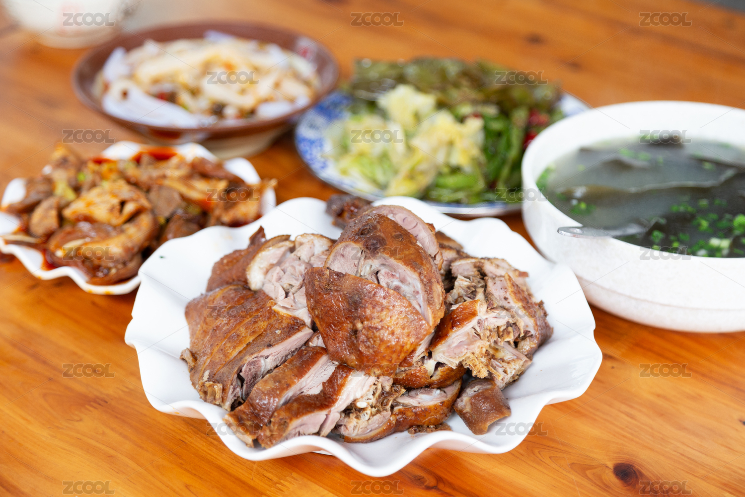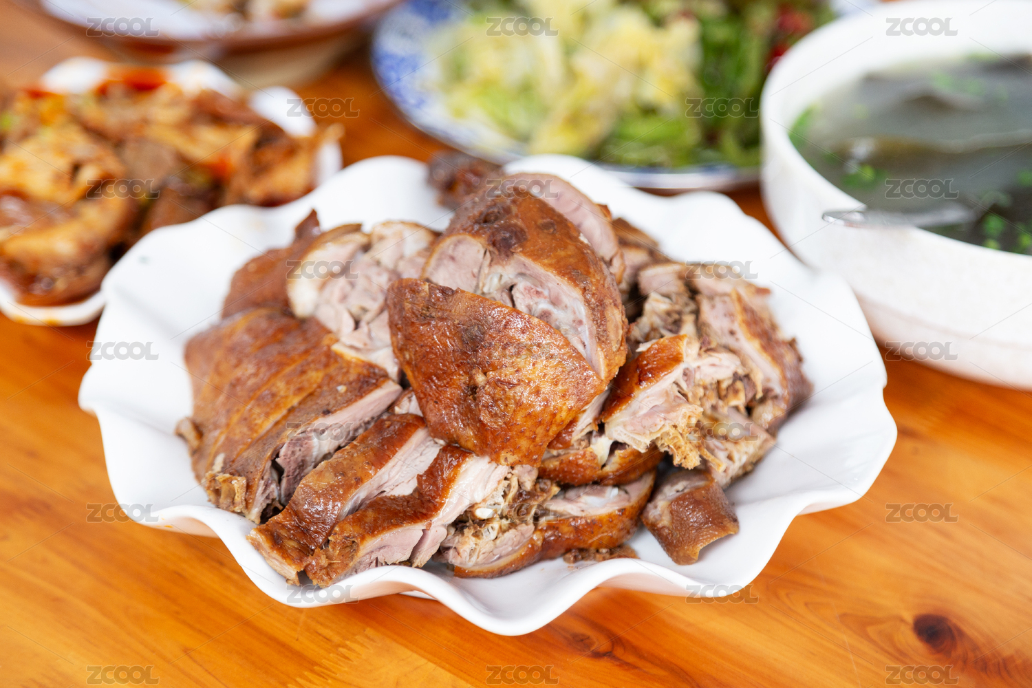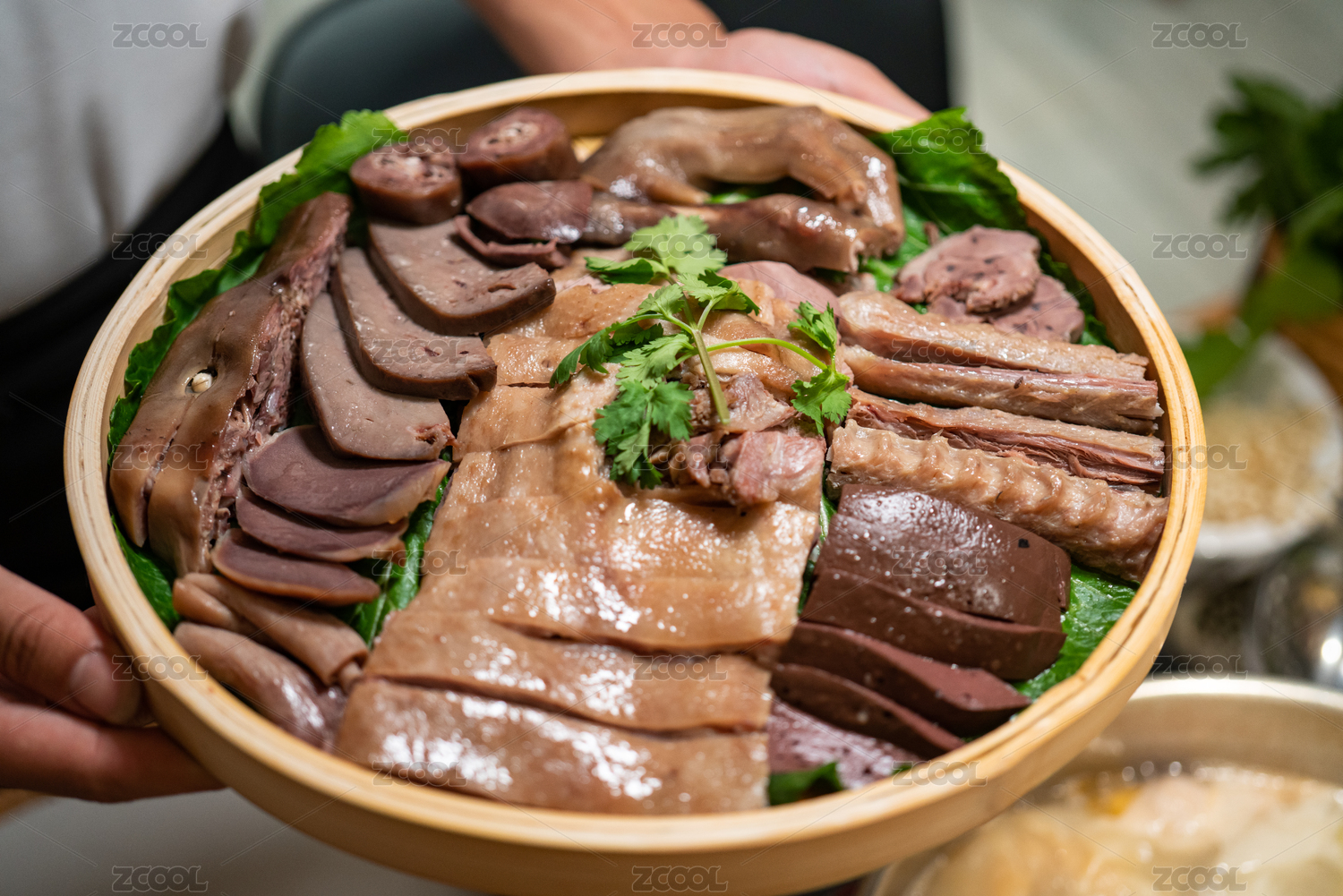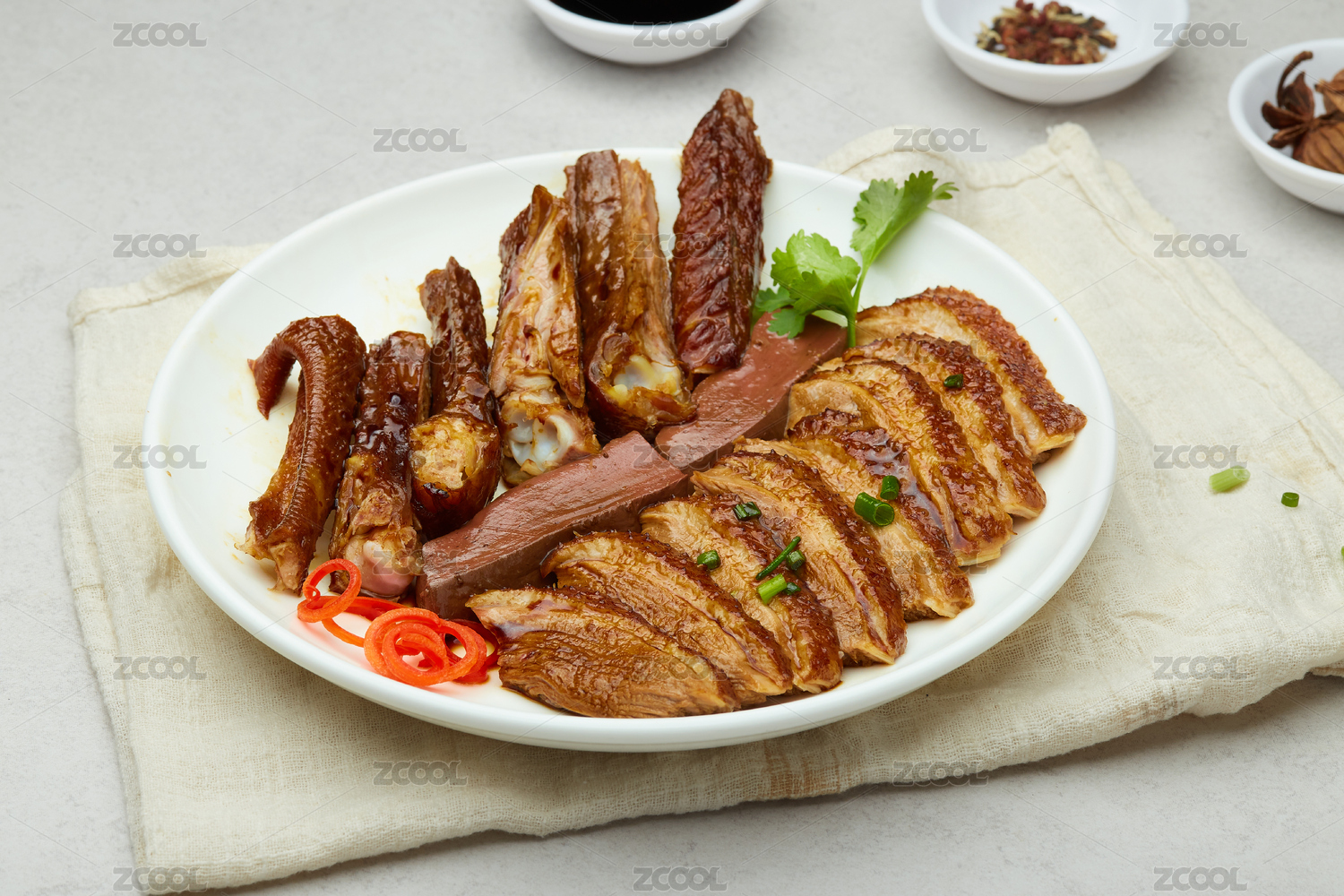 手拿一盘卤鹅拼盘摆盘放桌子上