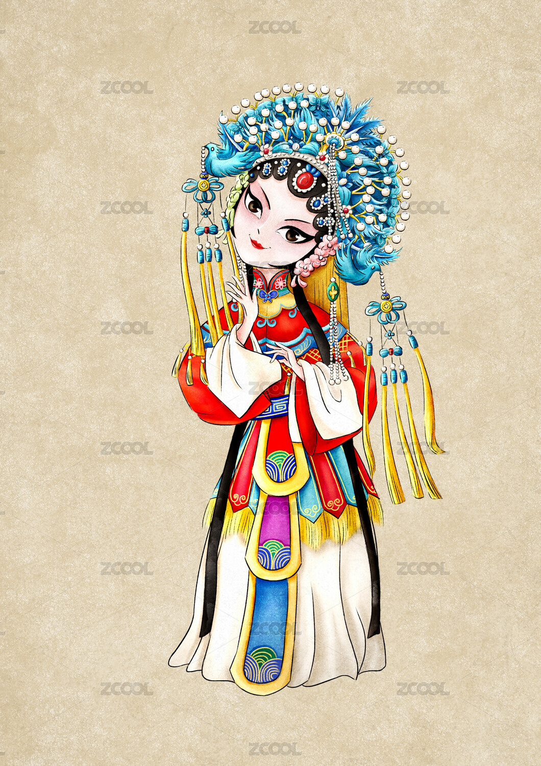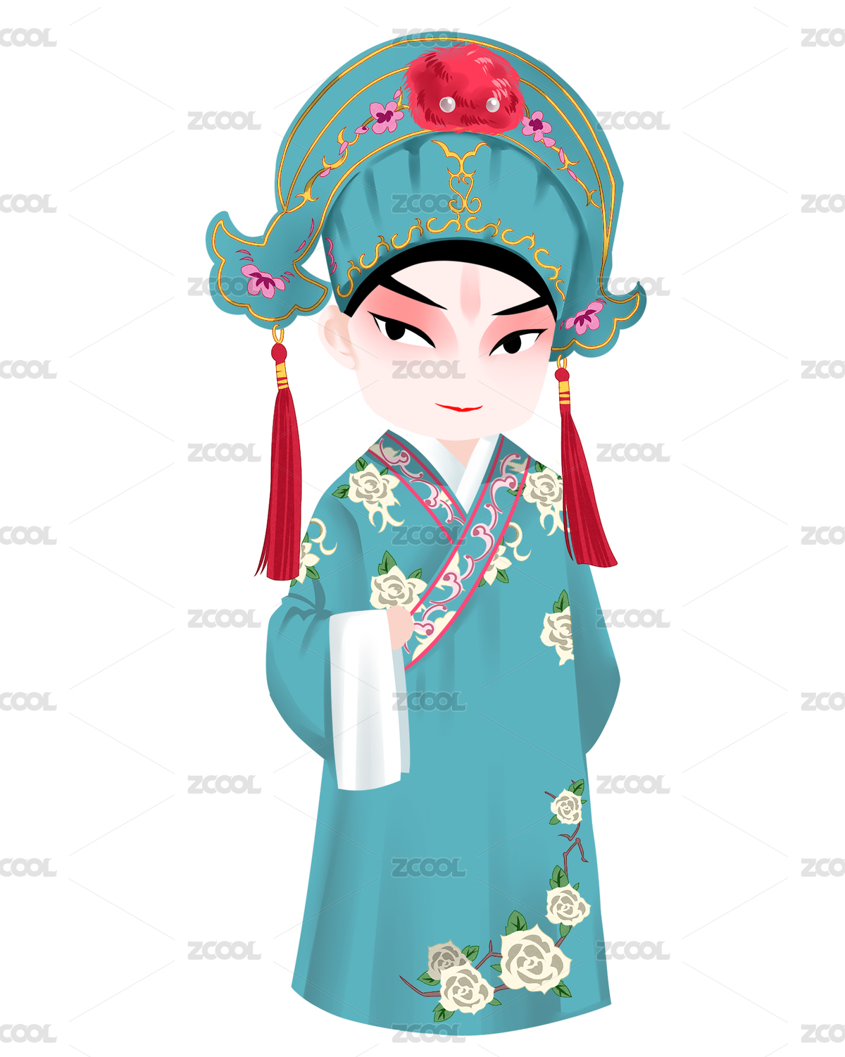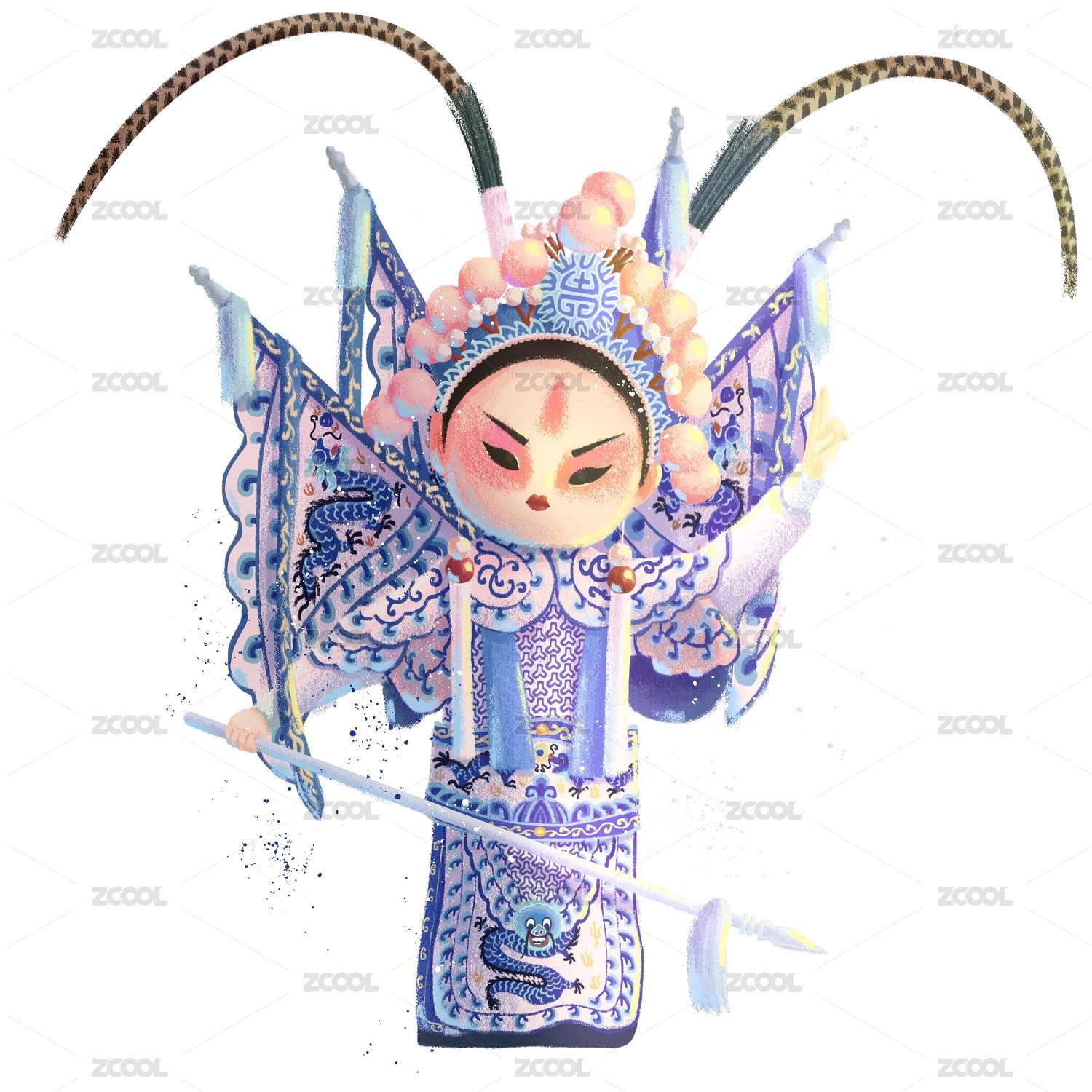 国潮京剧戏曲花纹蓝色戏服花旦女孩灯笼山云
