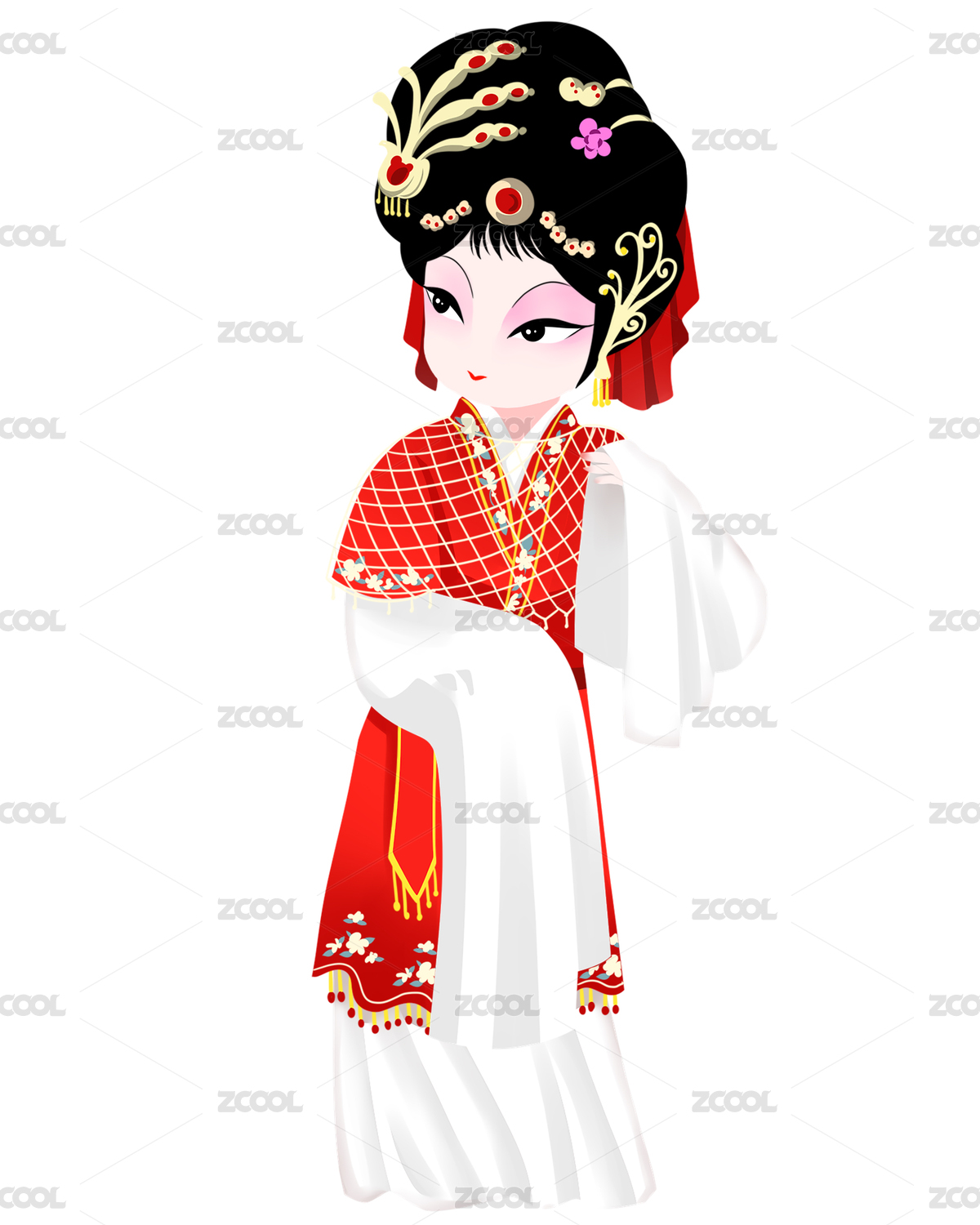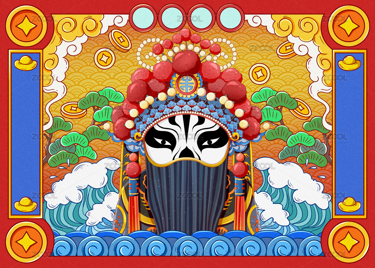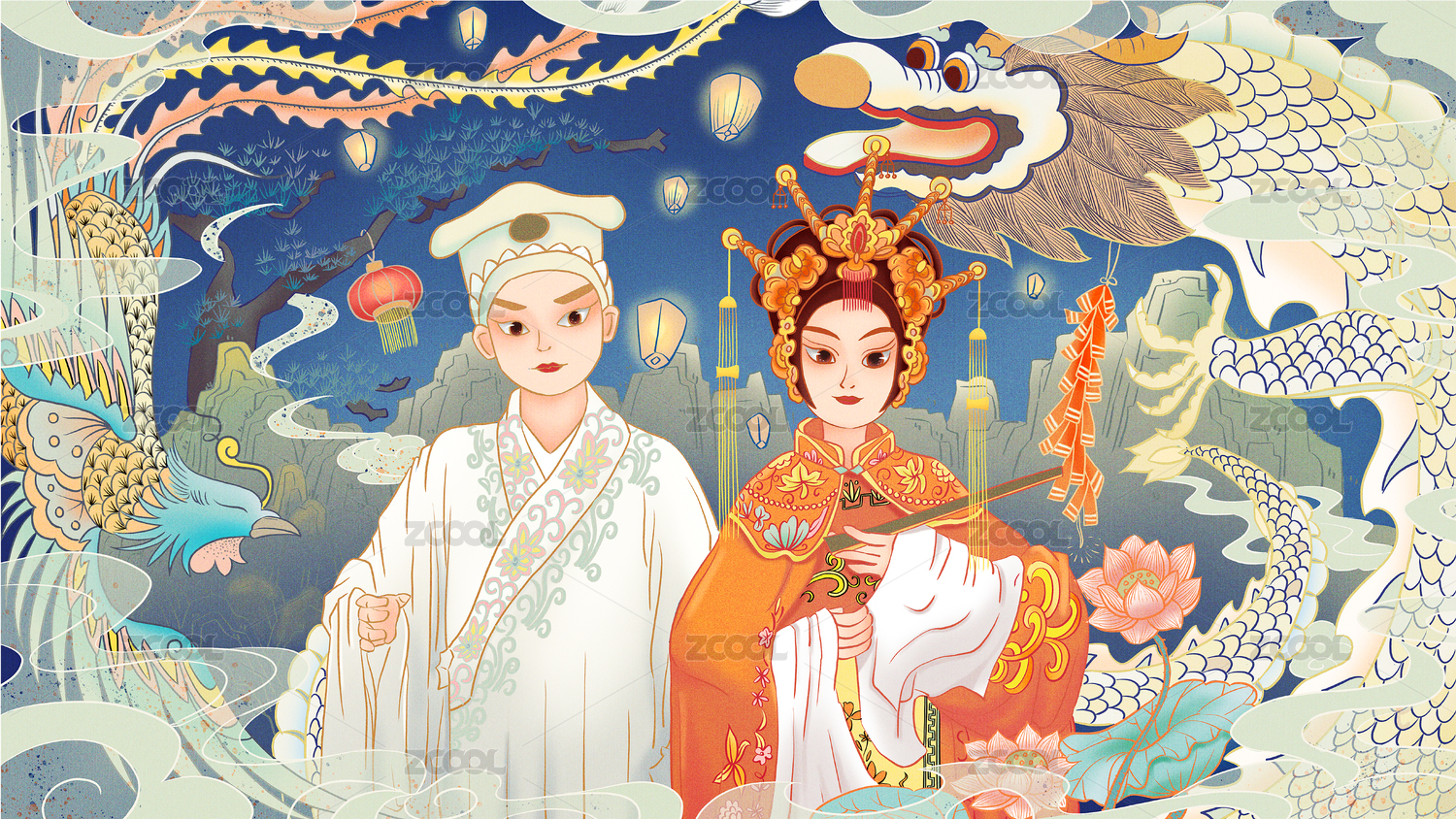 国潮京剧戏曲花纹蓝色戏服花旦女孩灯笼山云