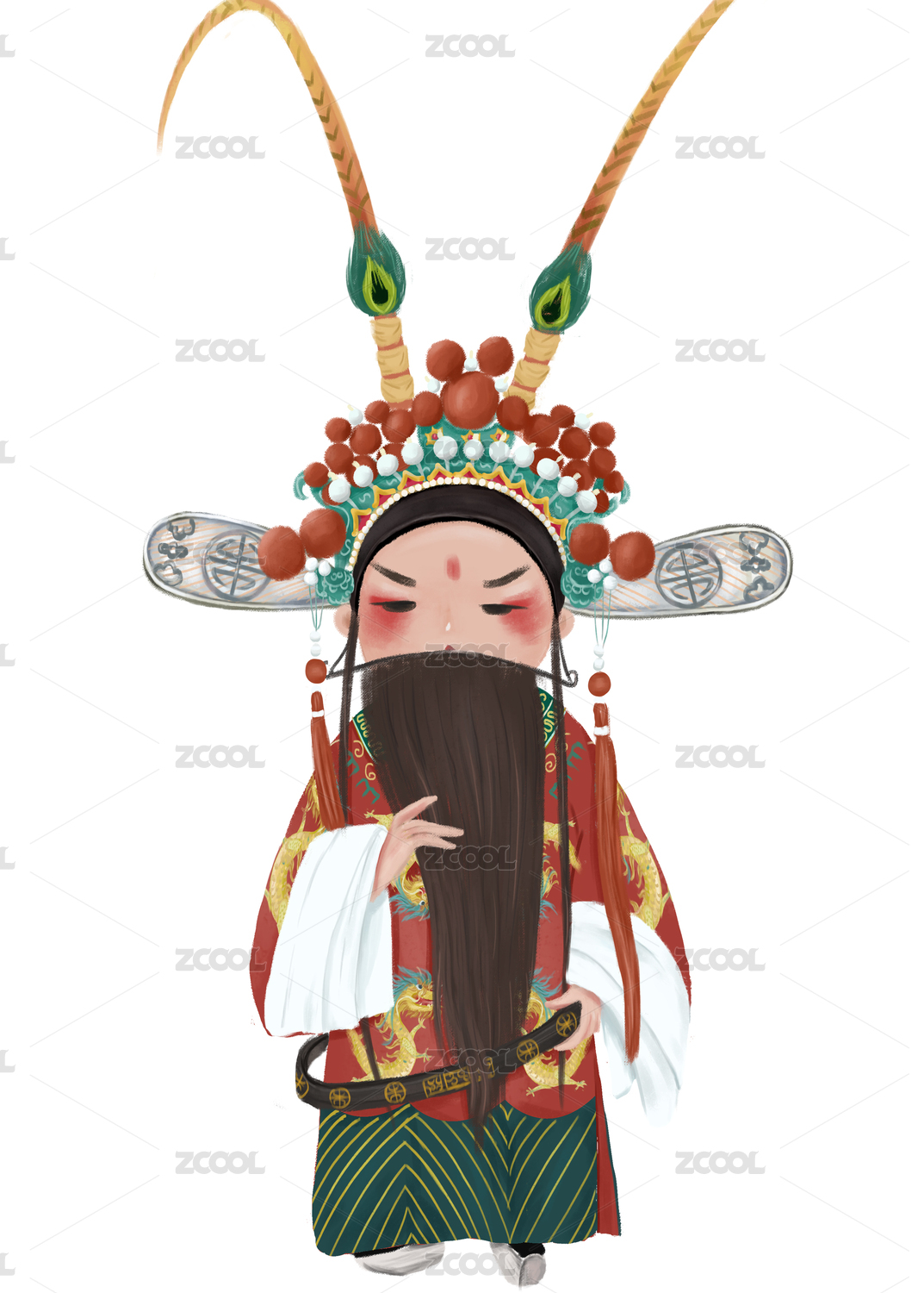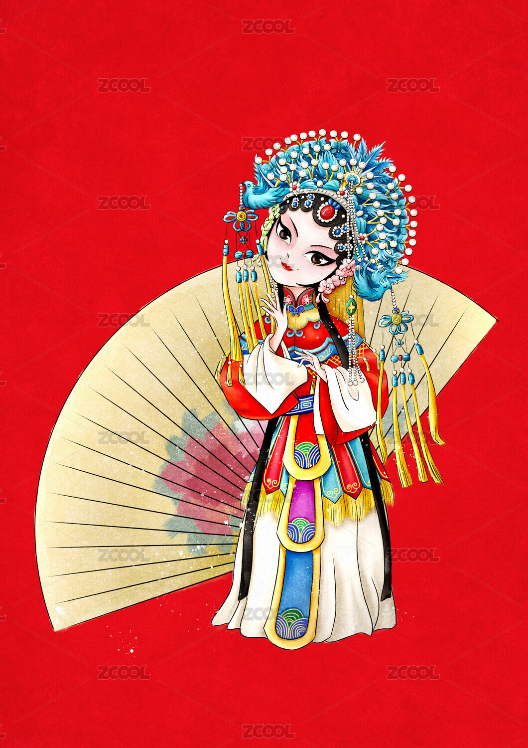 京剧服装的嫦娥手拿扇子背景是月亮手绘插画