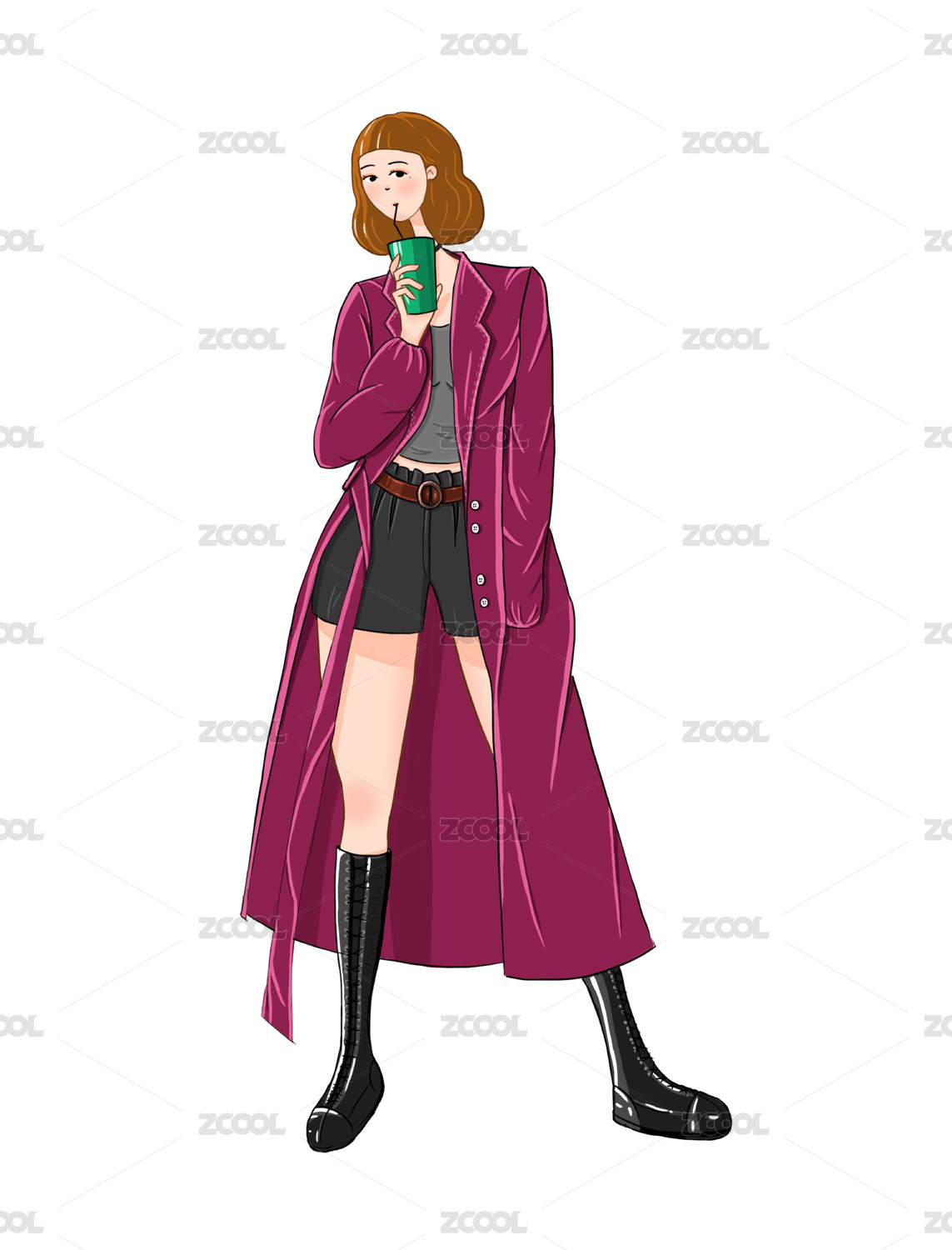 时尚人物手绘插画
