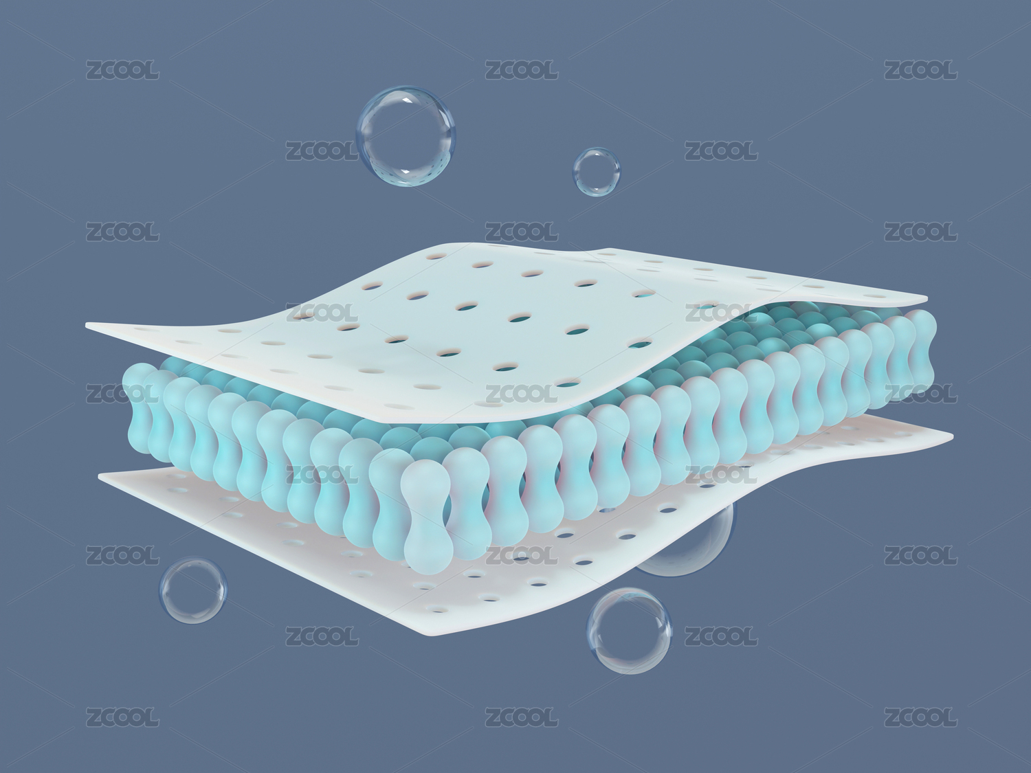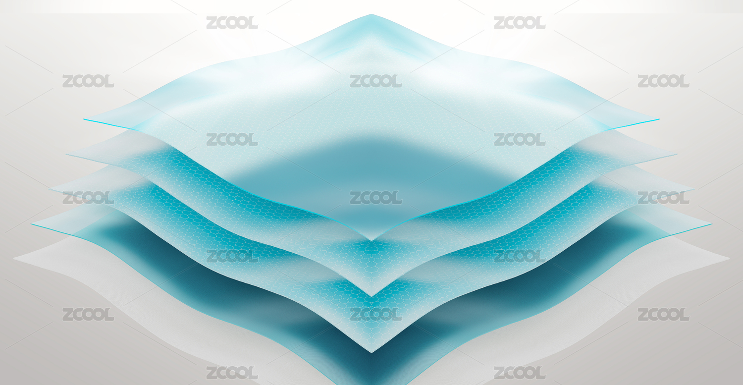 蓝色纳米纤维面料锁住水分子分层结构示意图