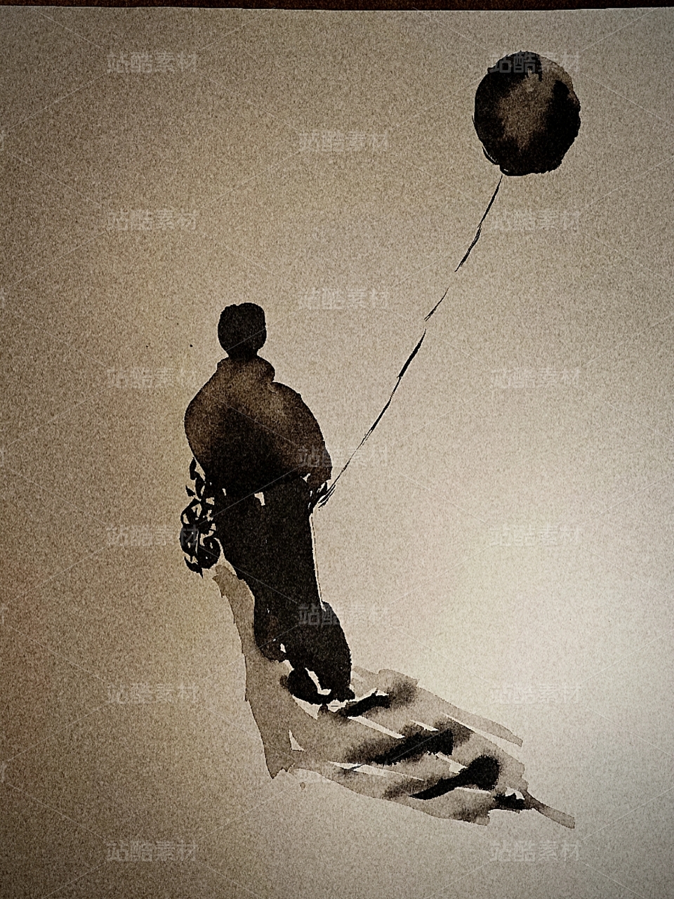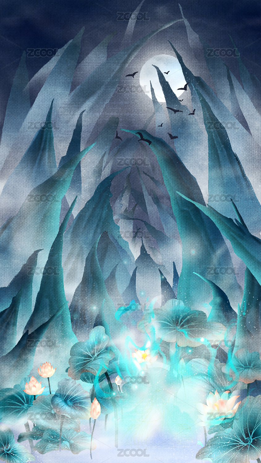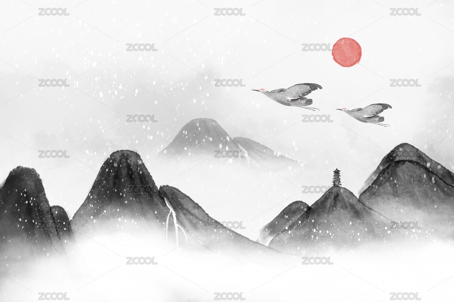 写意中国风意境水墨山川画手绘插画壁纸海报