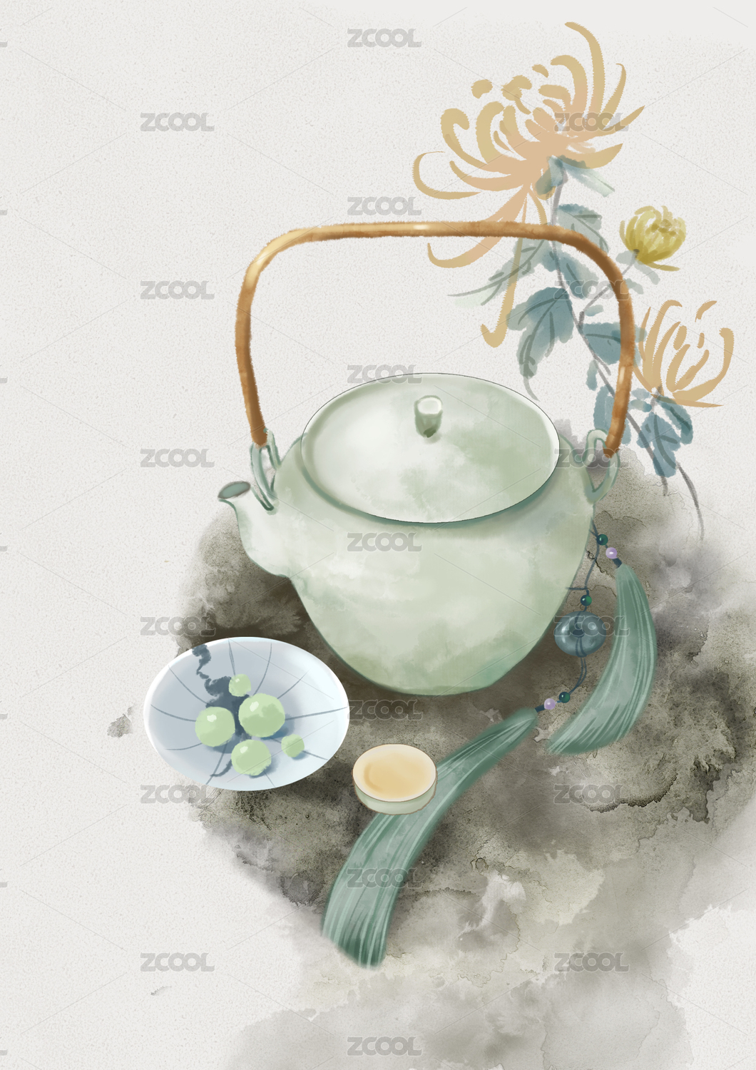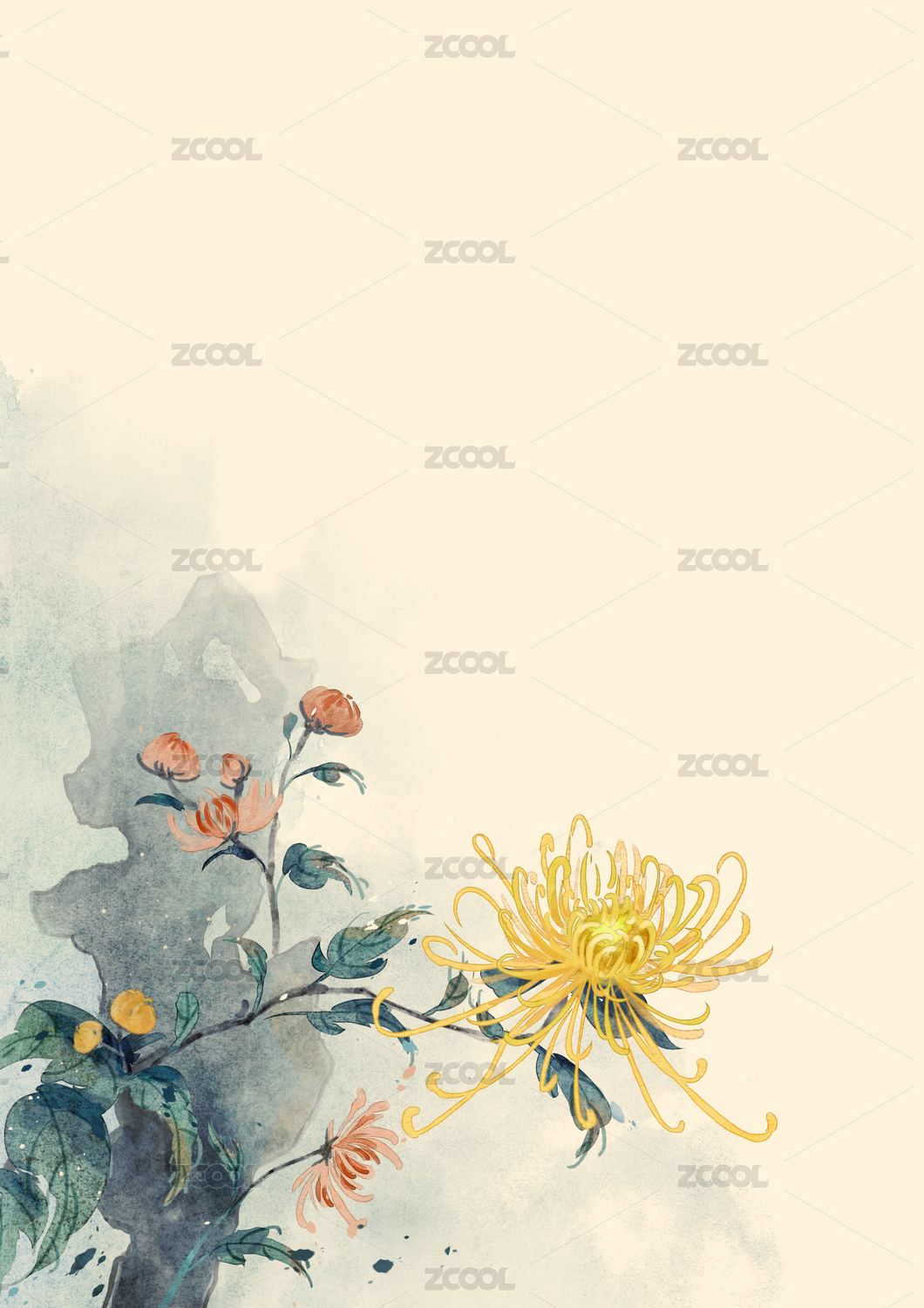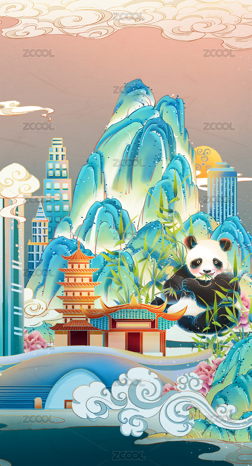 写意中国风意境水墨山川画手绘插画壁纸海报