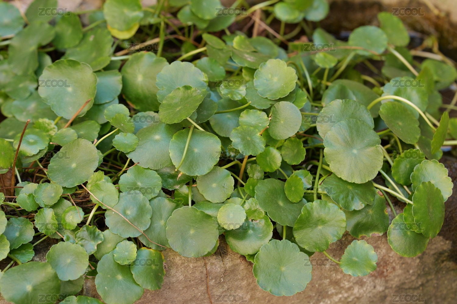 夏天石头花盆里的铜钱草