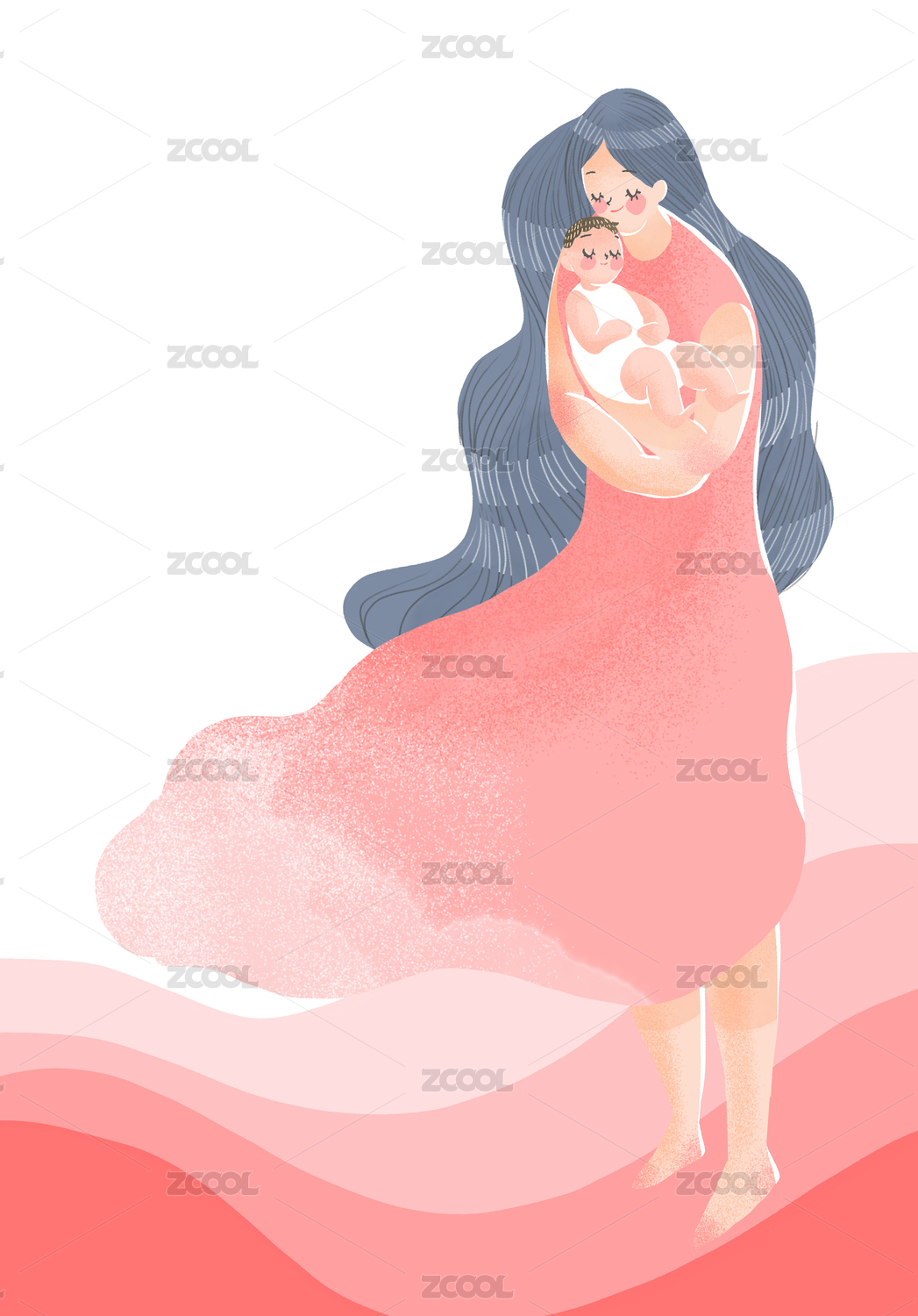 怀抱婴儿的妈妈母亲节母婴插画竖版