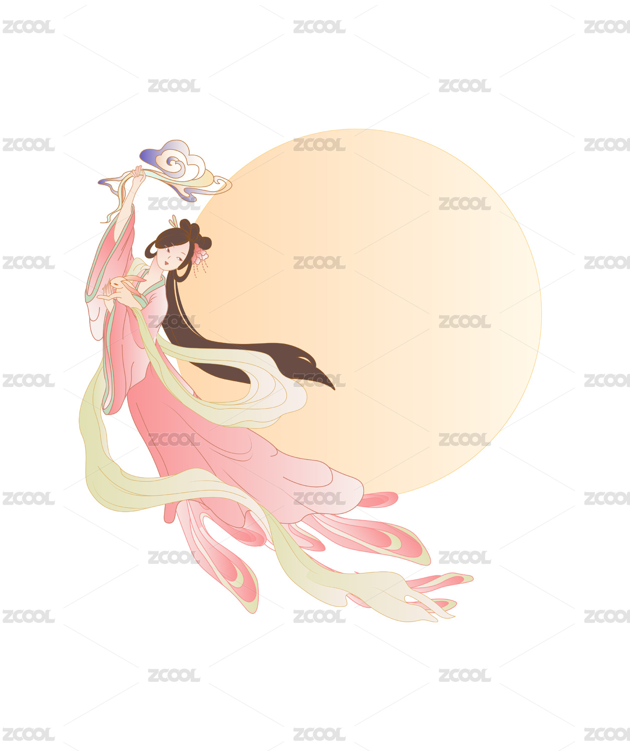 怀抱玉兔的嫦娥奔月