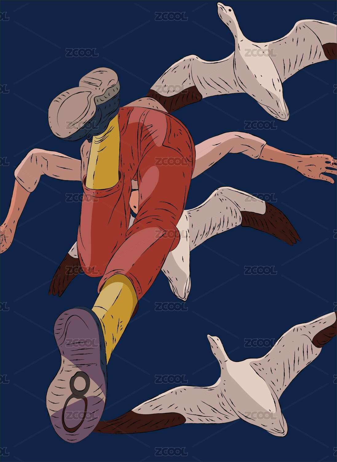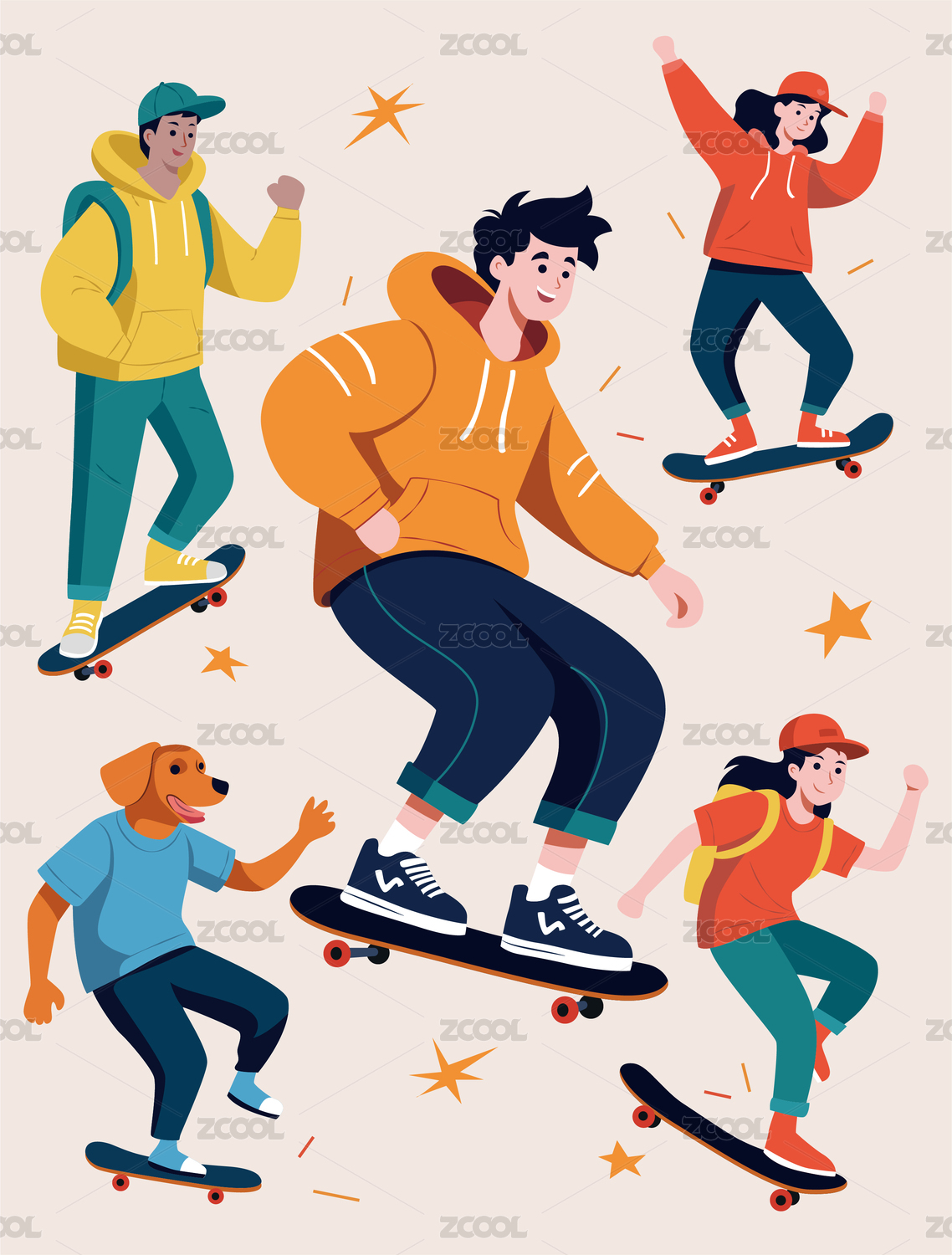 滑板少年少女激情运动跳跃人物青春时尚插画