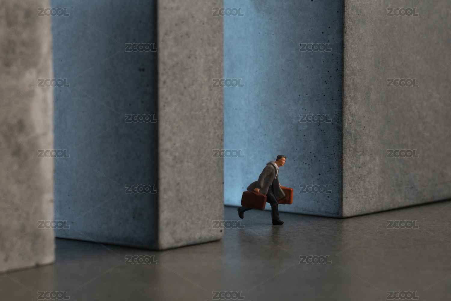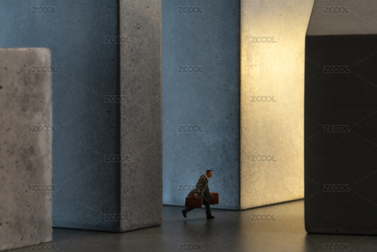 拿着行李匆忙出行的行人微缩创意