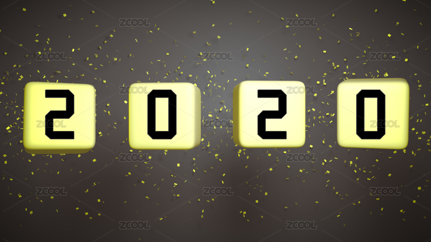 2020年新年快乐金色方块彩条彩带简单简约概念数字2020快乐