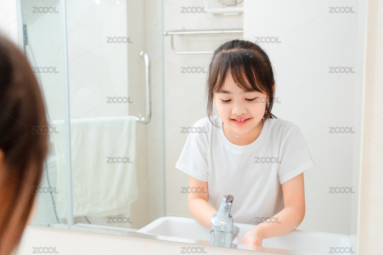 在洗手的小女孩