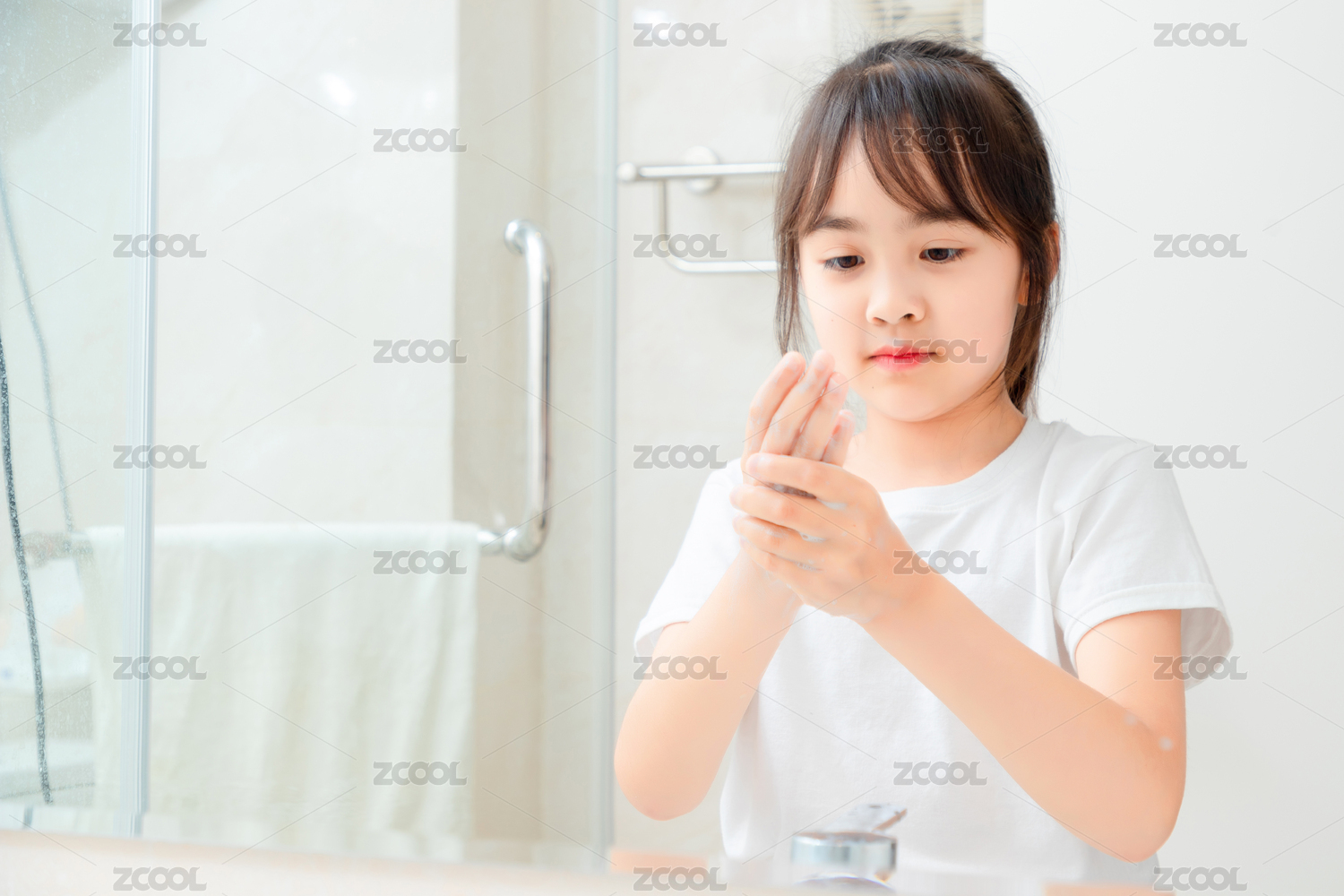 爱香皂洗手的小姑娘