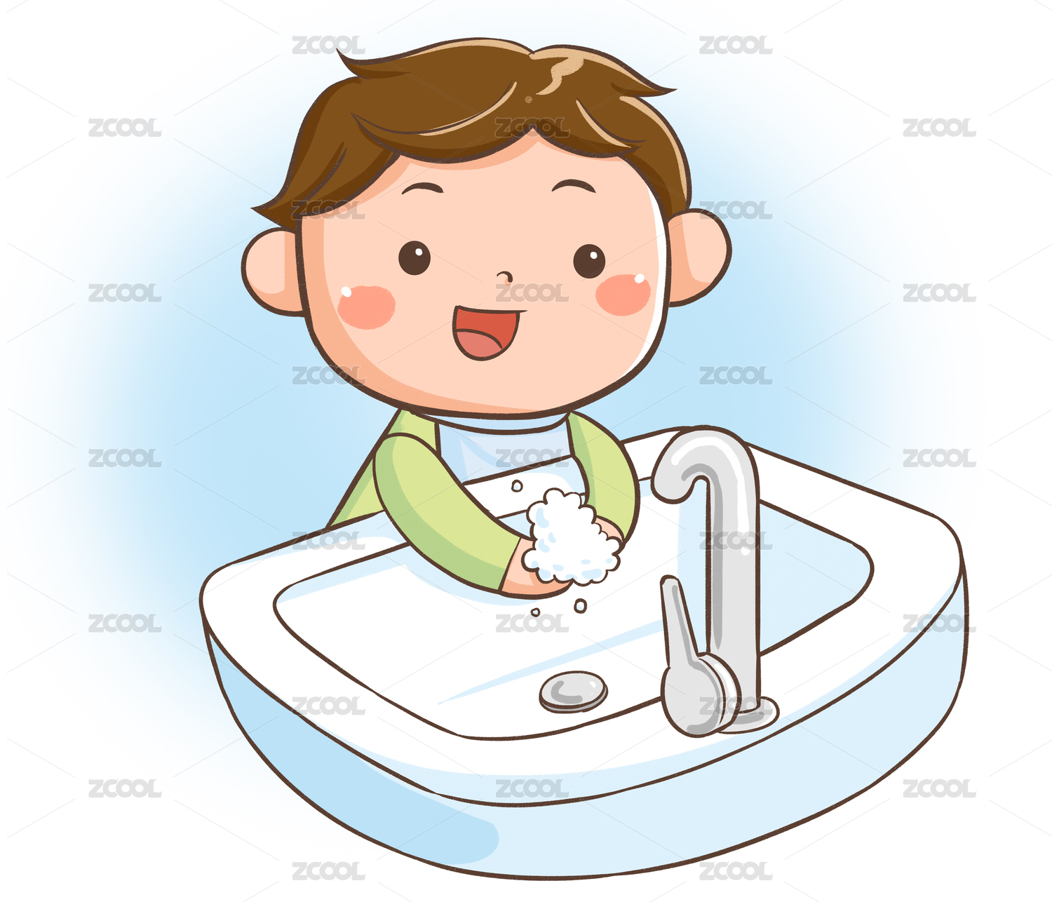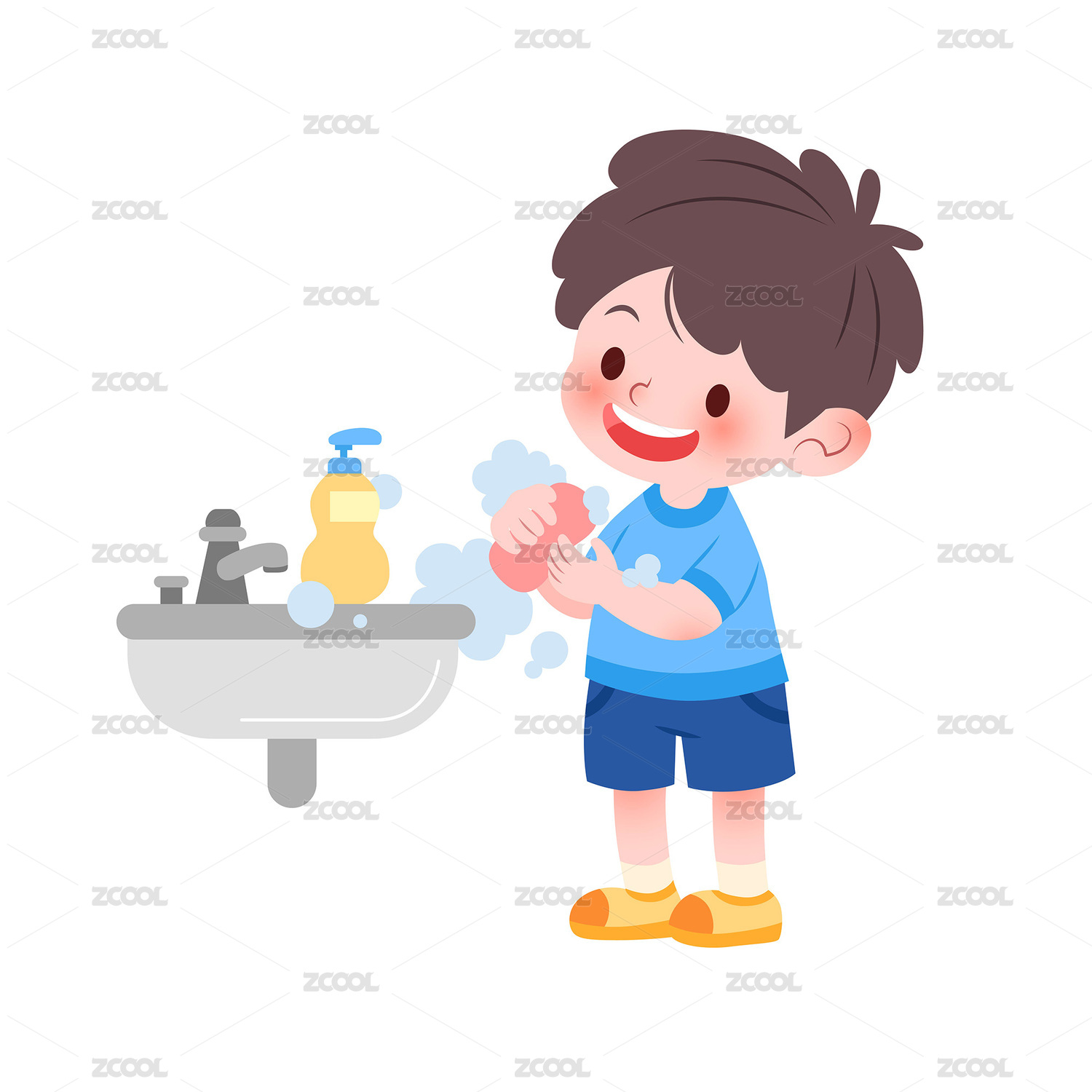 矢量插画卫生健康香皂洗手的男孩
