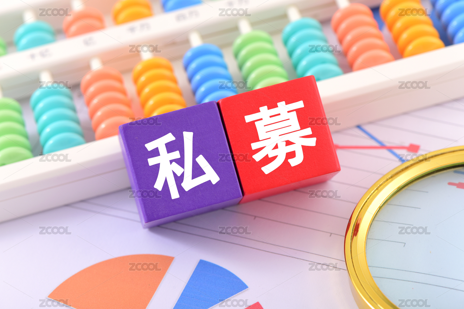 金融办公用品上的放大镜印着文字私募