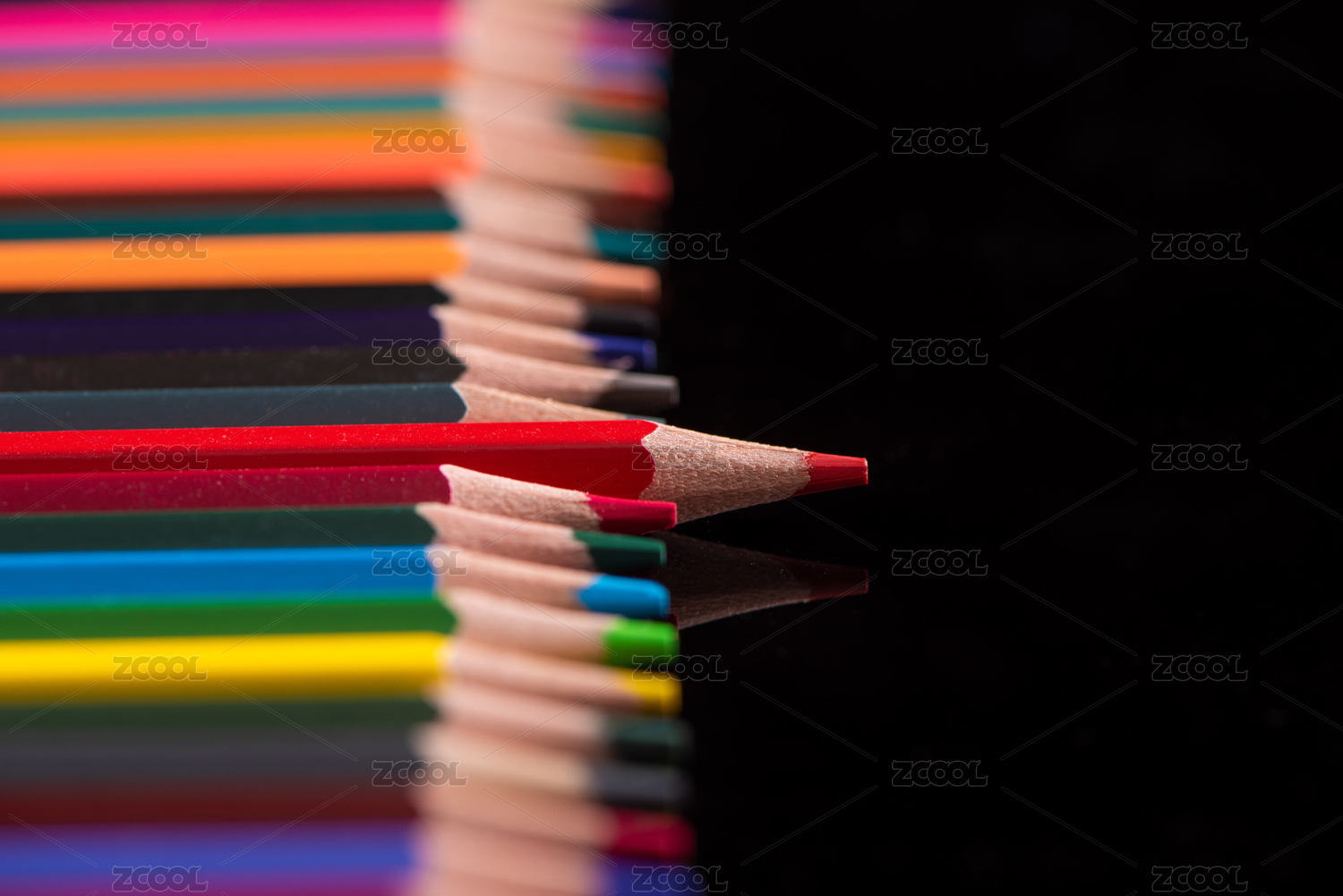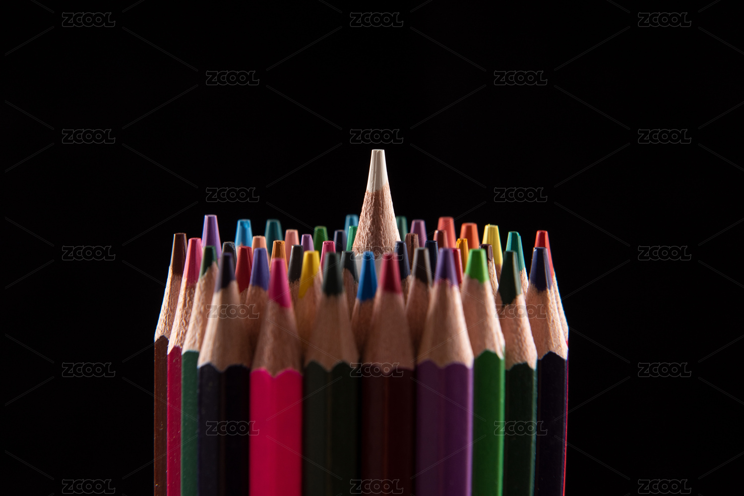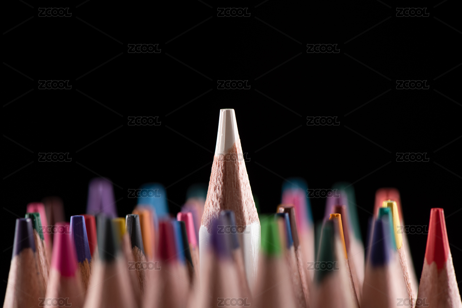 彩色铅笔里一只突出来的铅笔,黑色背景