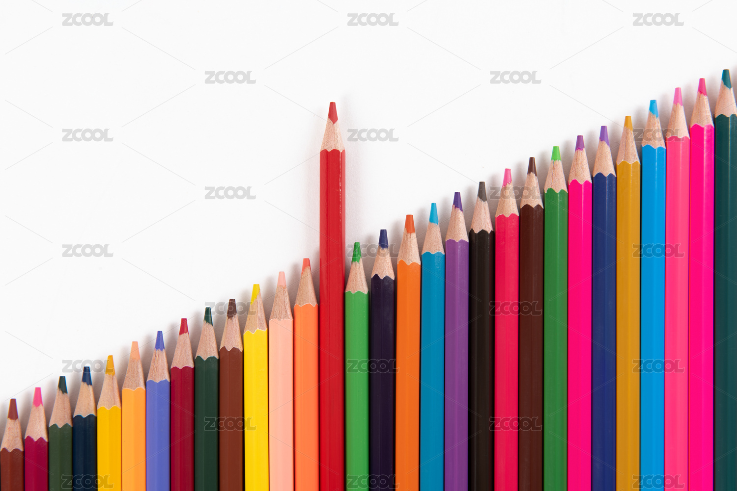 从一排铅笔中突出来的一支铅笔