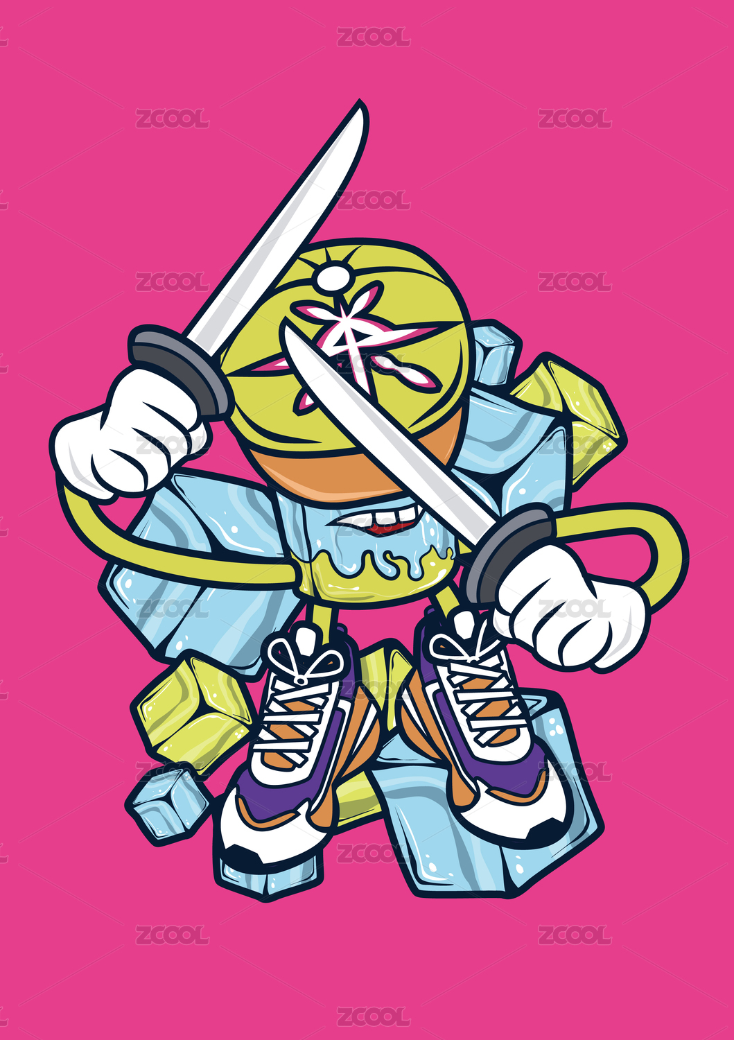 美式矢量雪糕刺客潮流插画印花图案设计素材