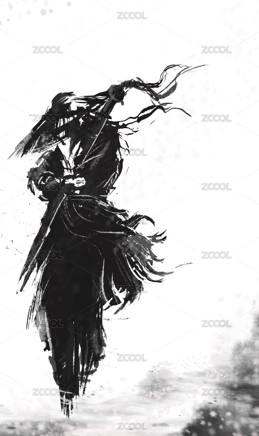 中国水墨武侠人物行走的刺客