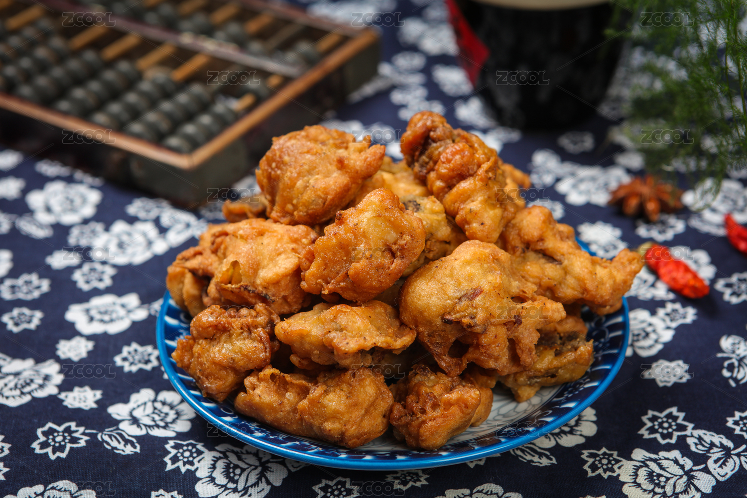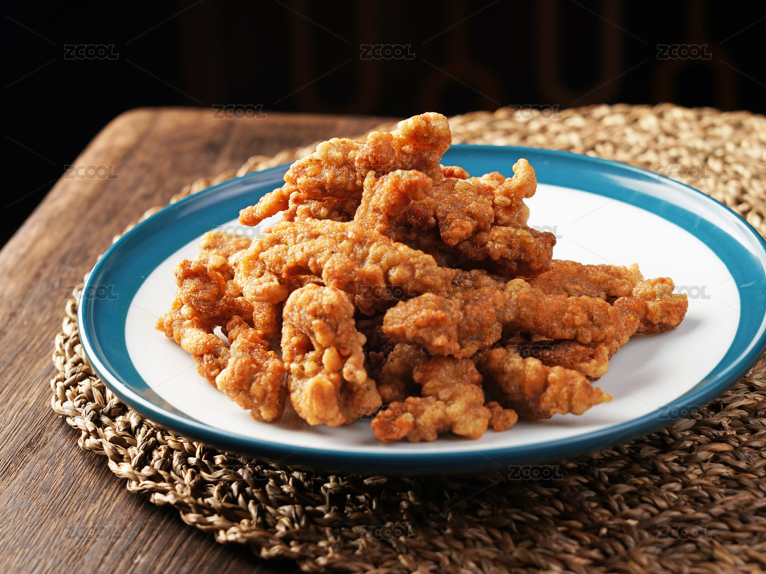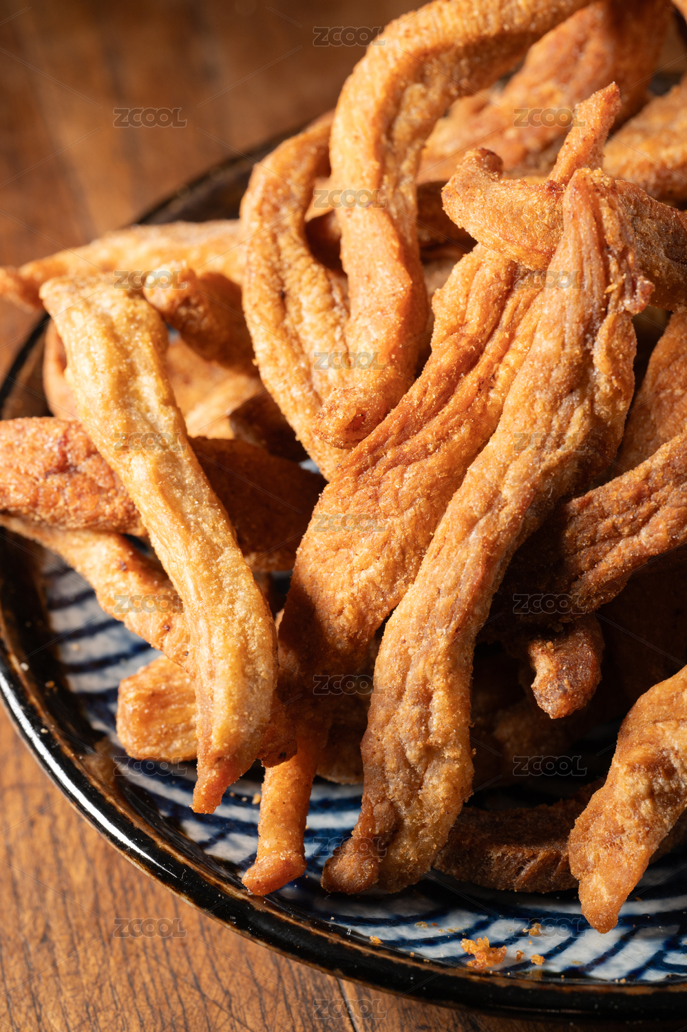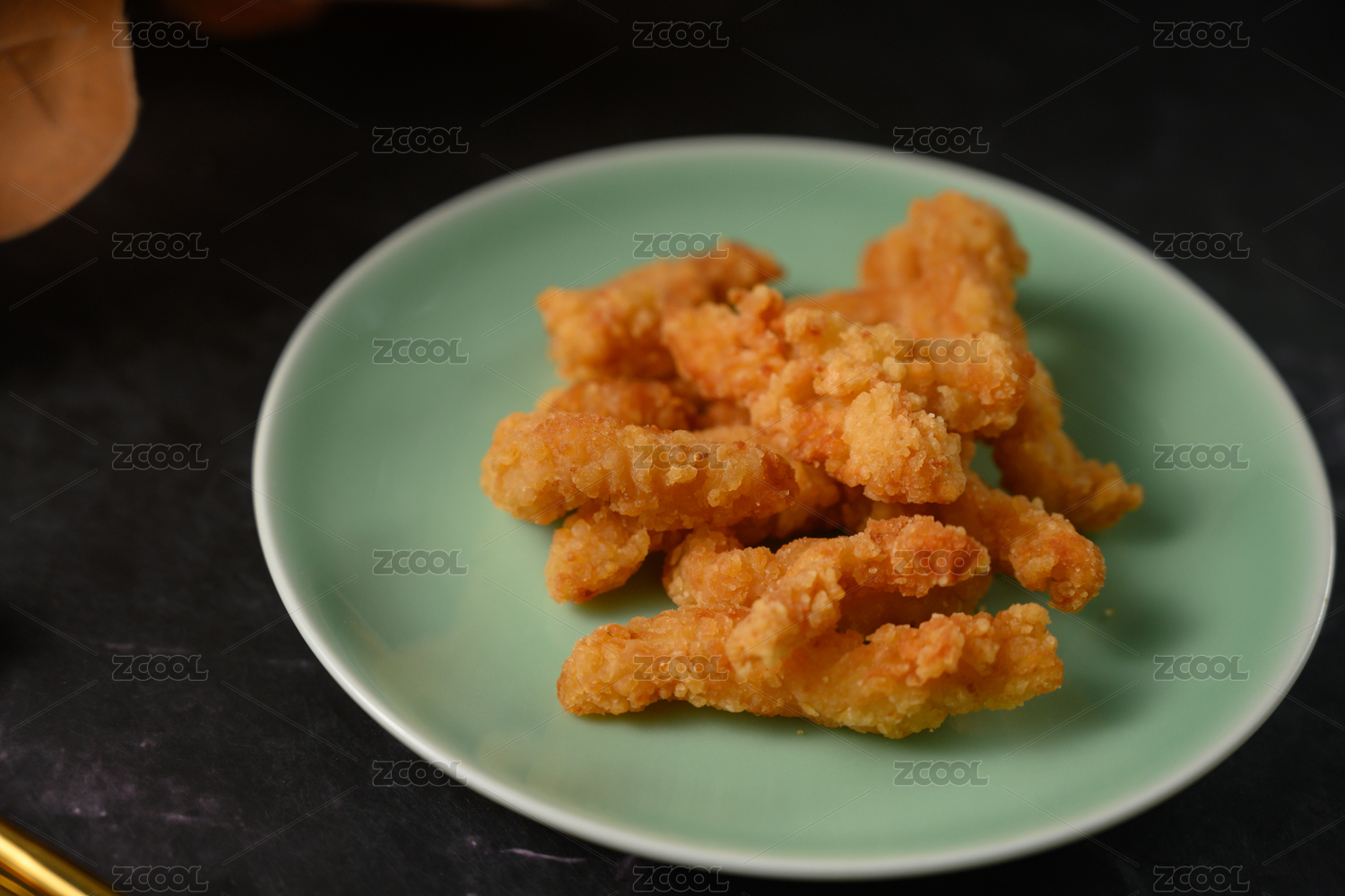 桌面上的盘子里的美味可口的小酥肉
