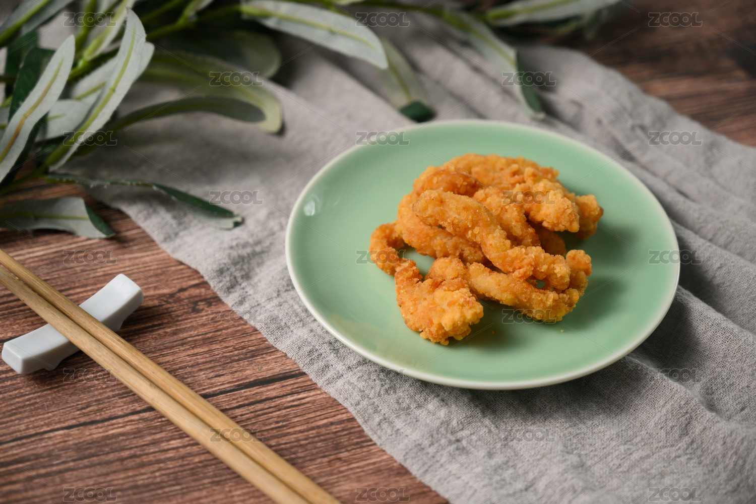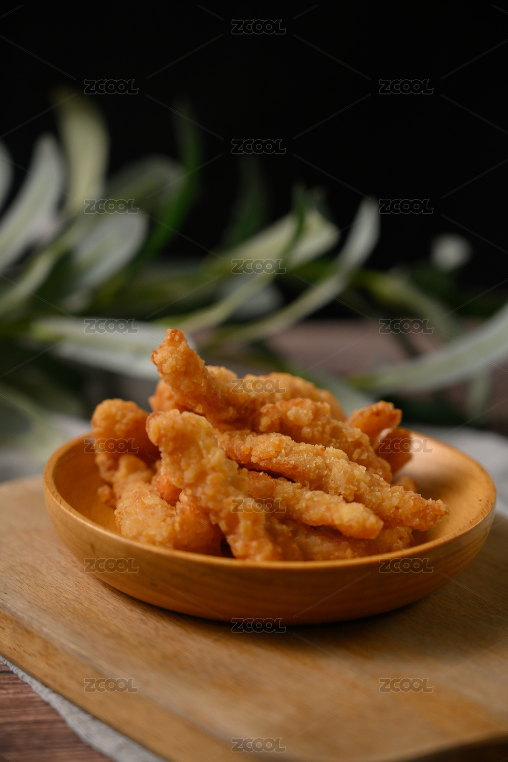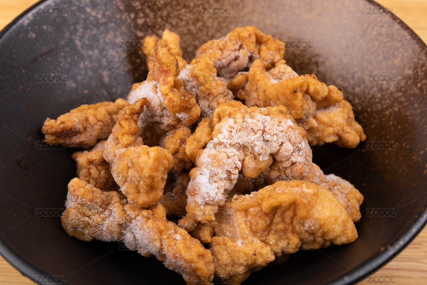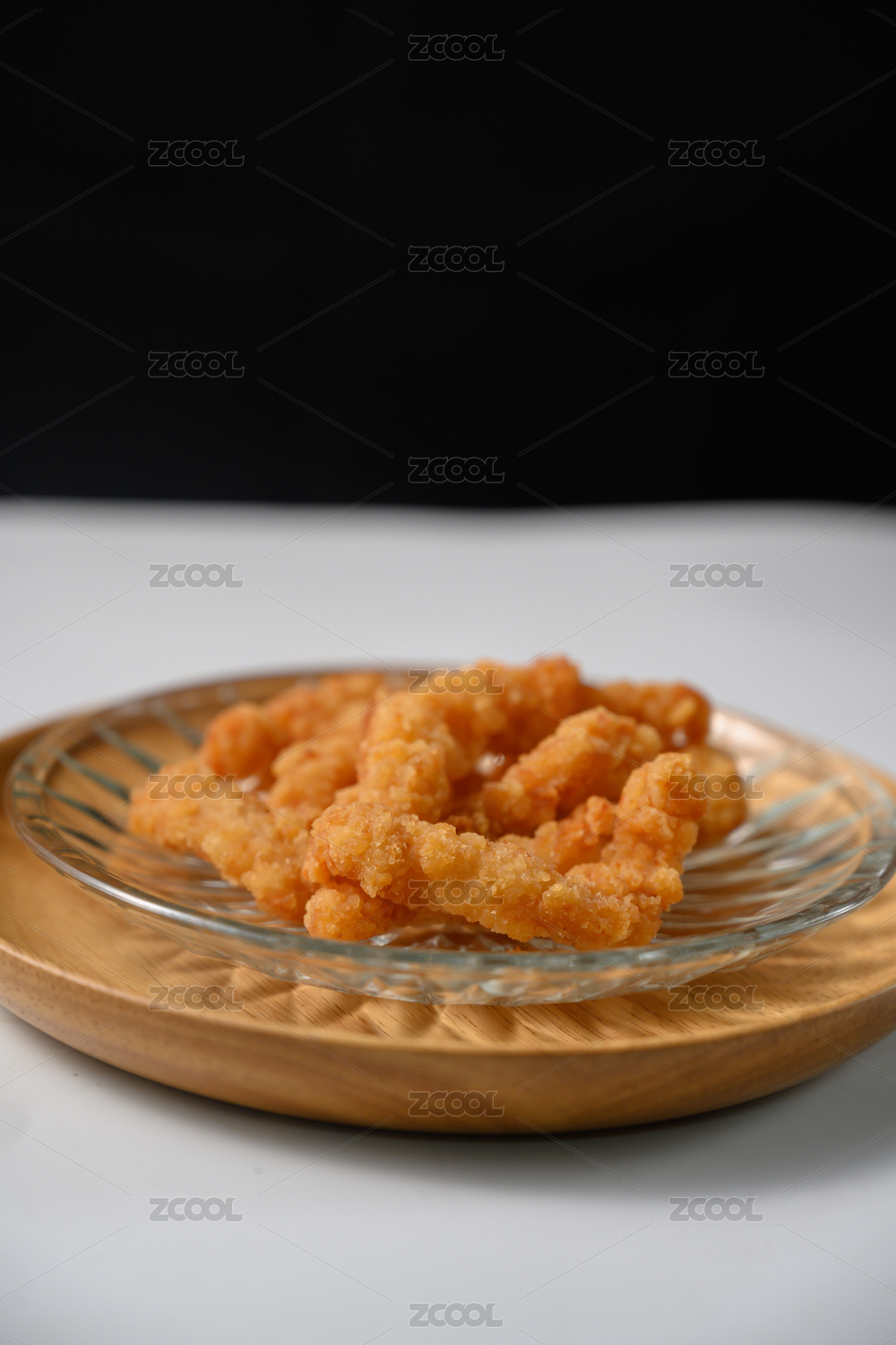 桌面上的盘子里的美味可口的小酥肉