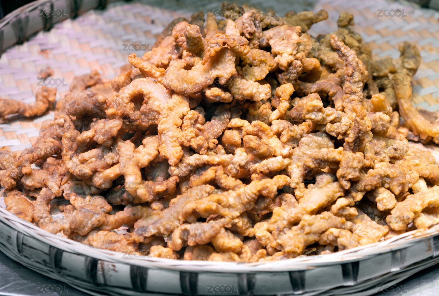簸箕里的油炸酥肉