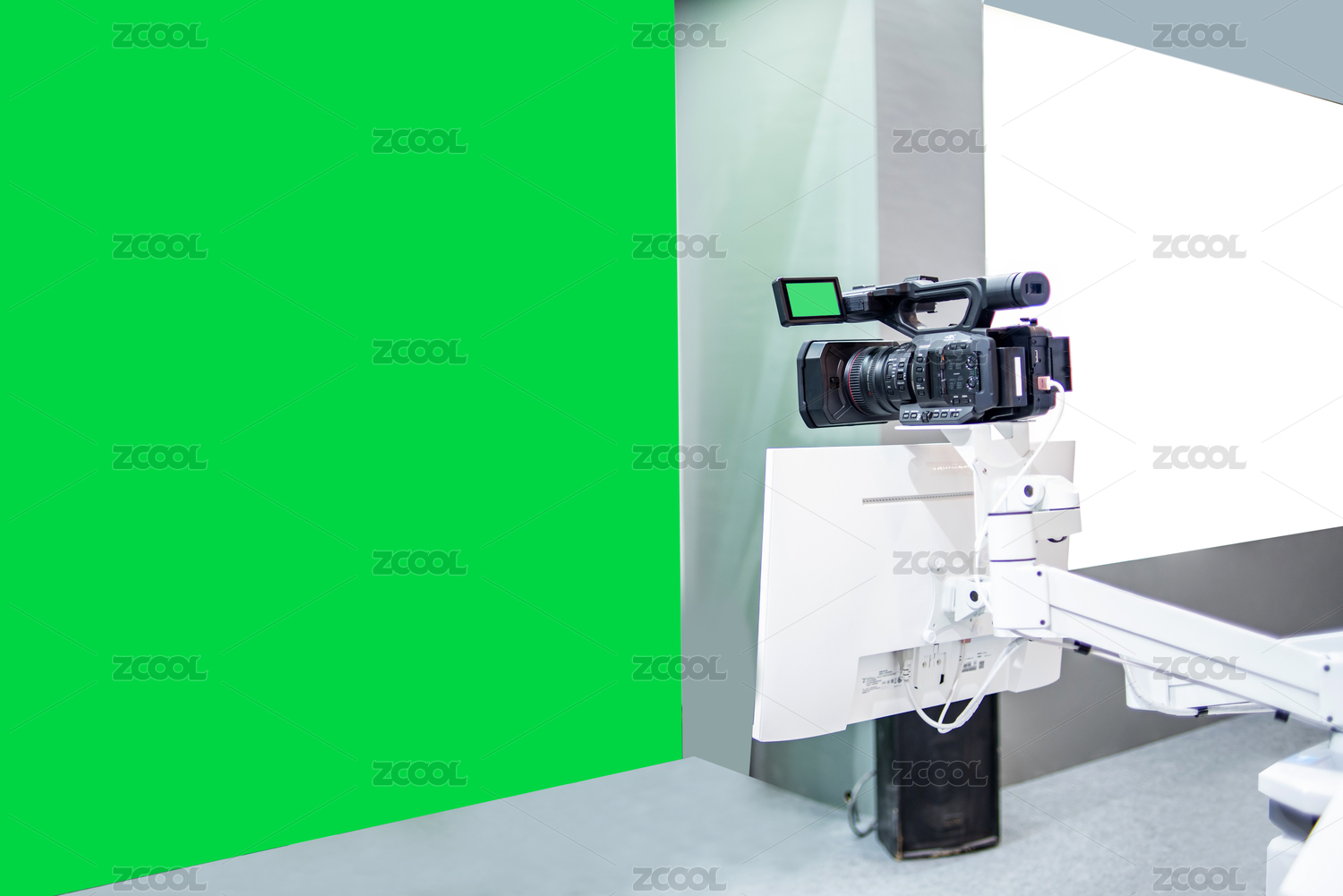 空白绿色屏幕的笔记本电脑和一杯咖啡