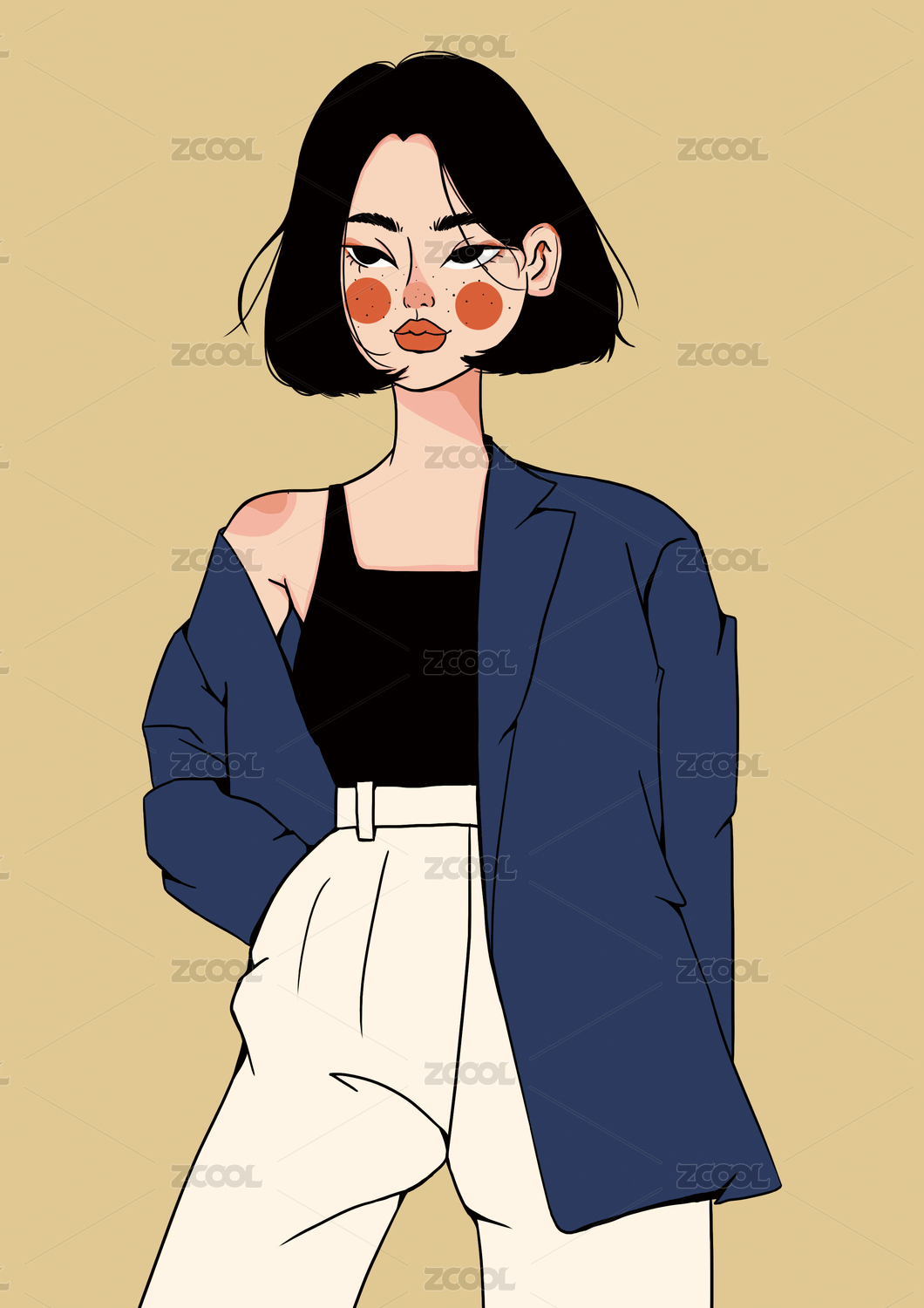 短发女生插画