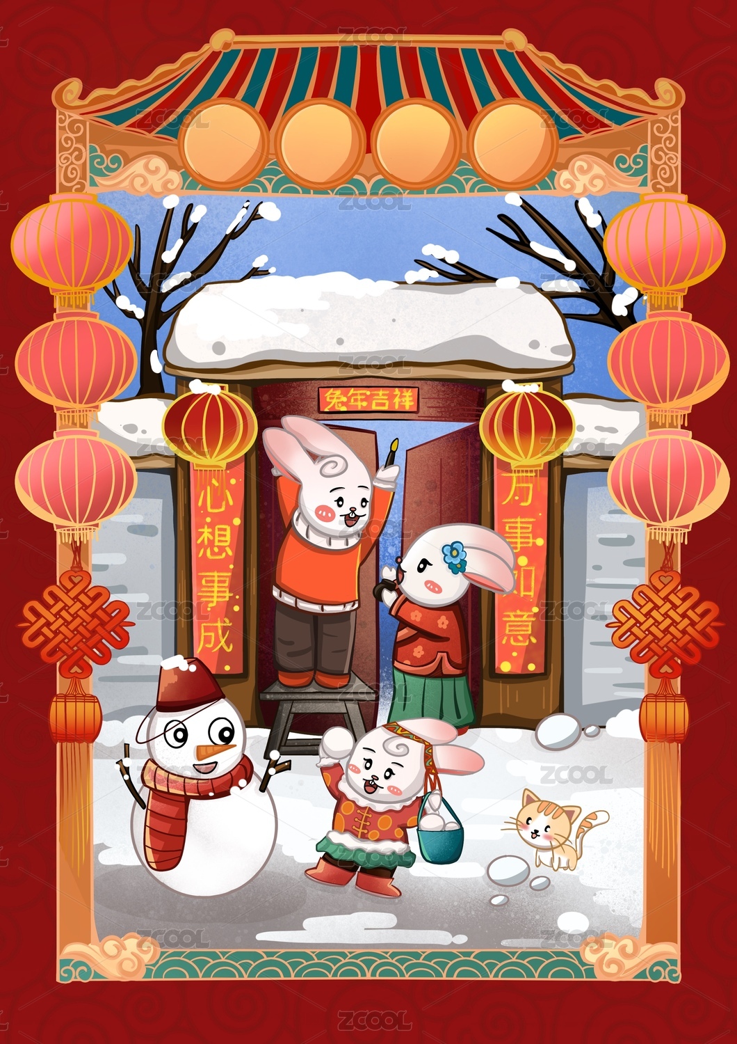 兔子贴春联