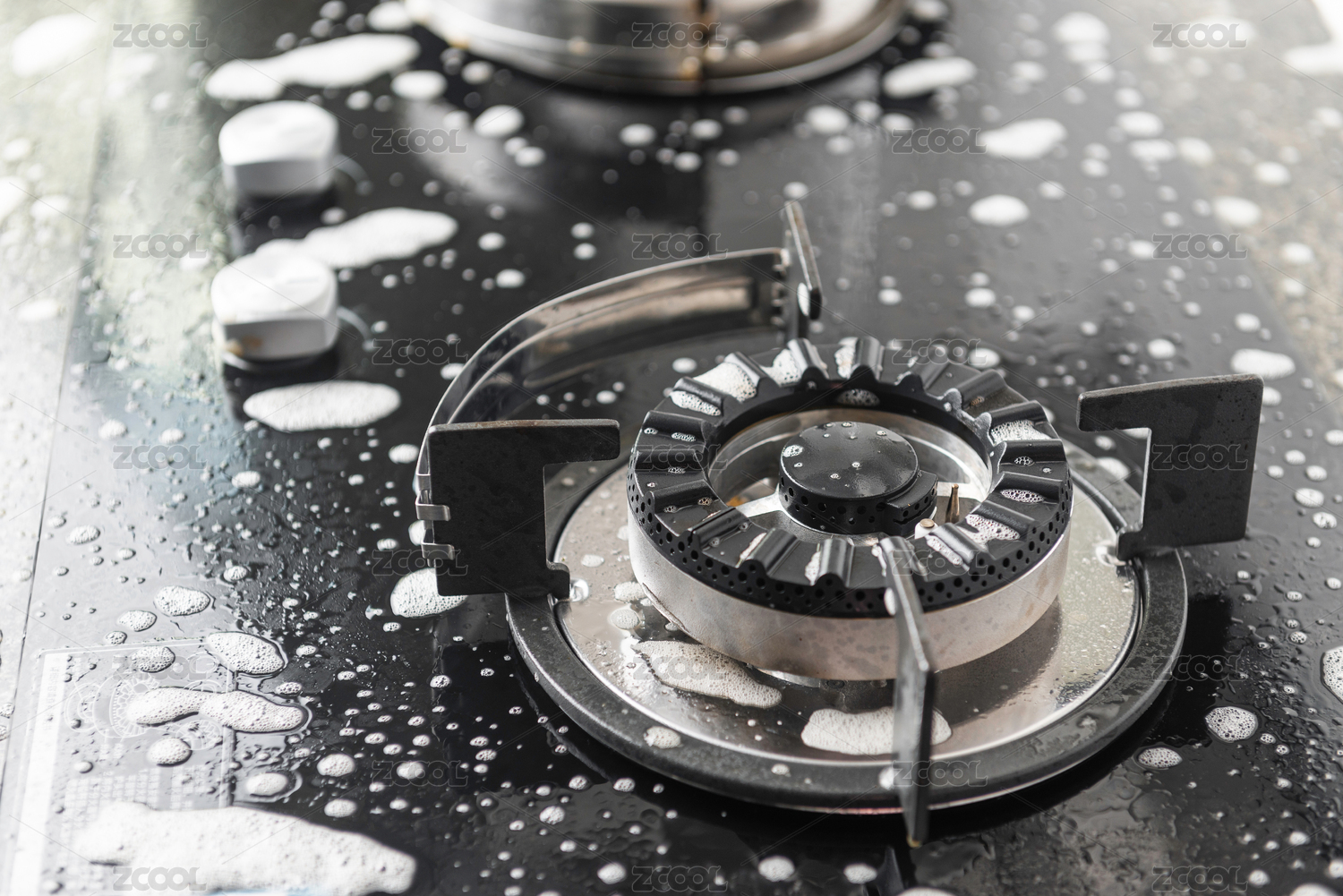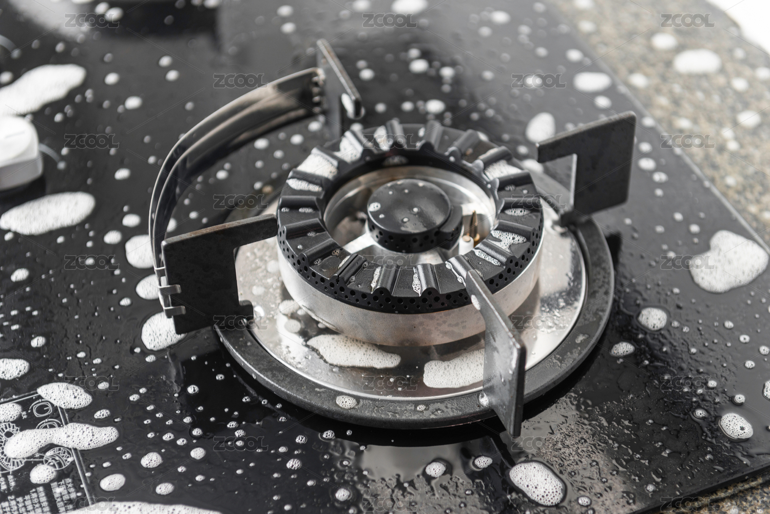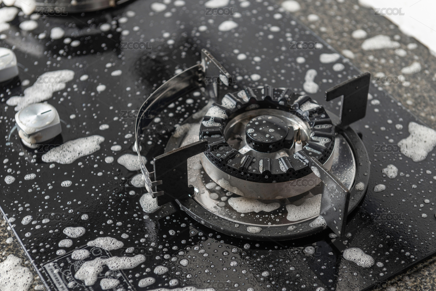 被清洁泡沫覆盖的天燃气灶台
