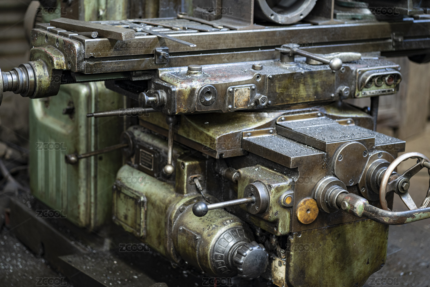 加工厂车间里一台满是油污的车床