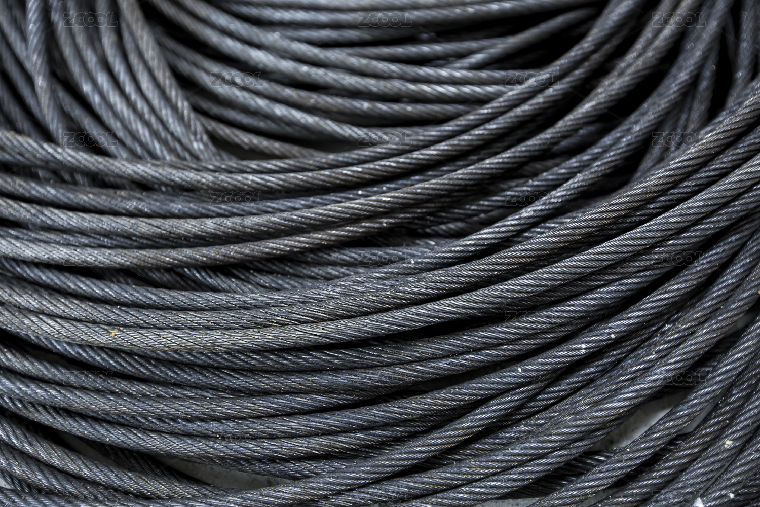 满是油污的弯曲钢丝绳背景特写