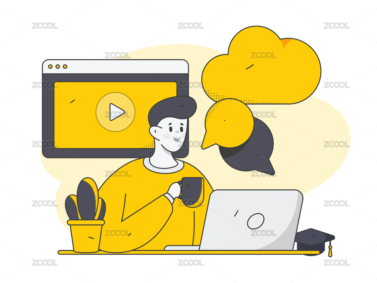 视频会议面试插画在线教育老师教学培训海报