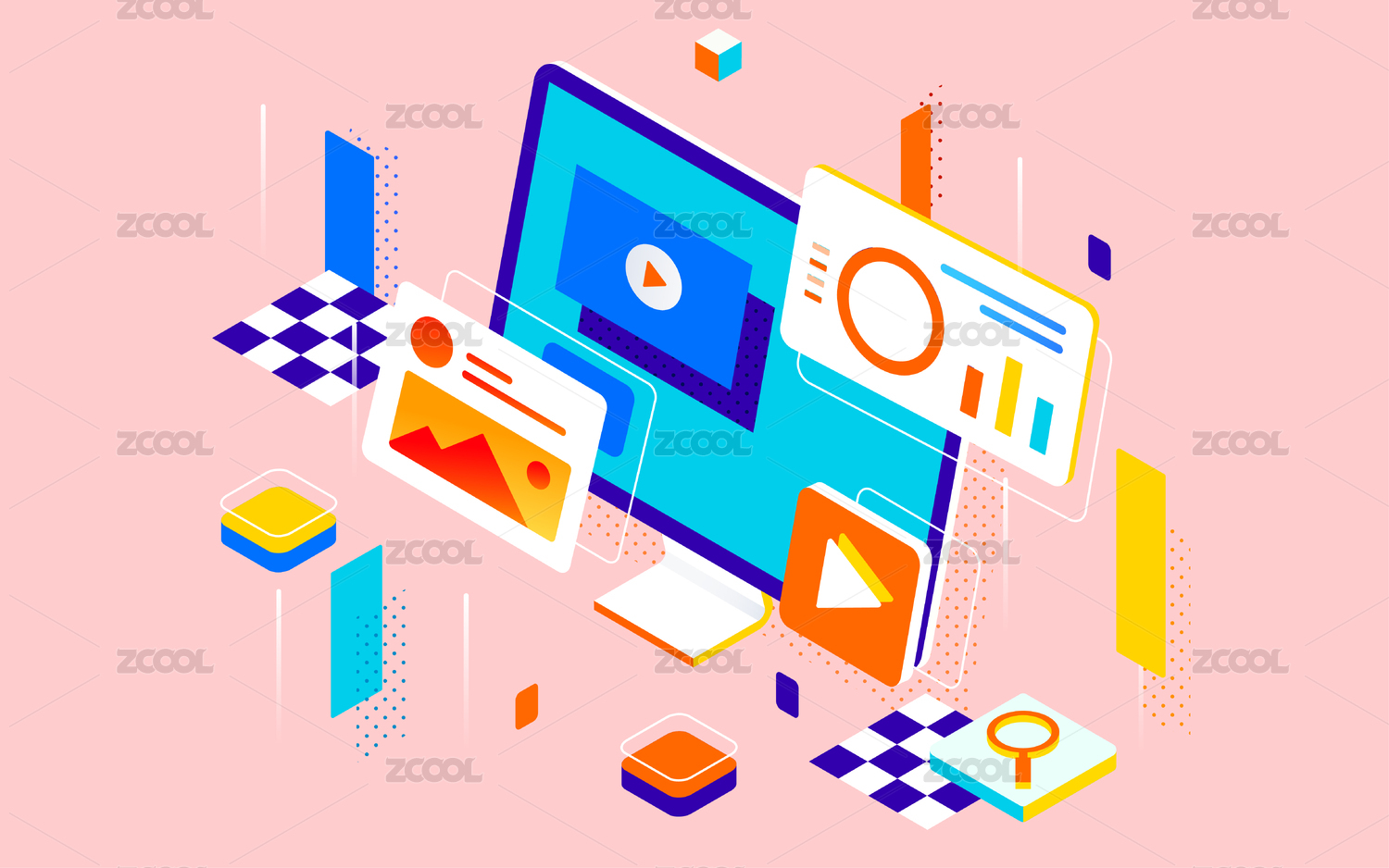 在线教育等距插画学习网课读书海报