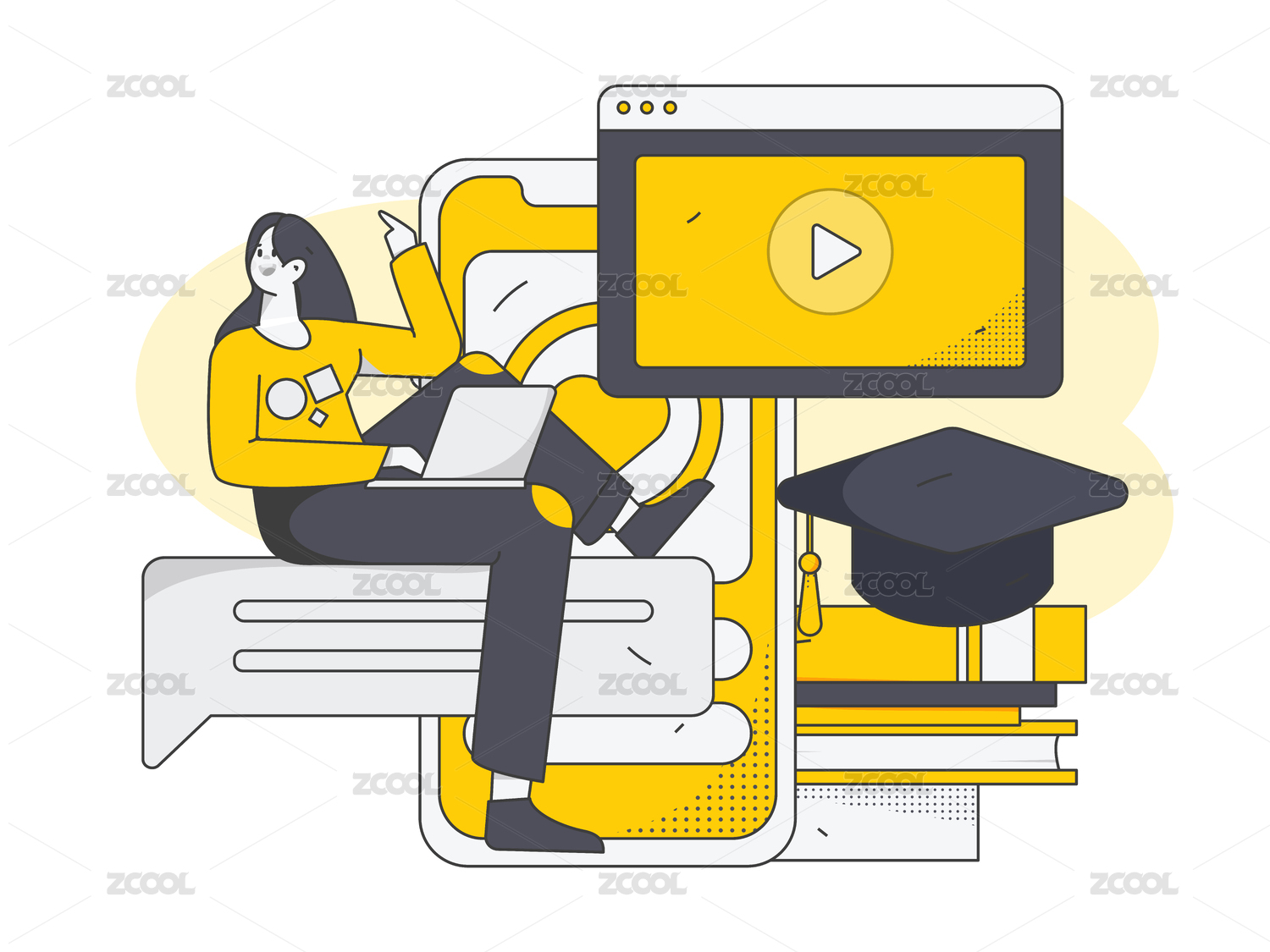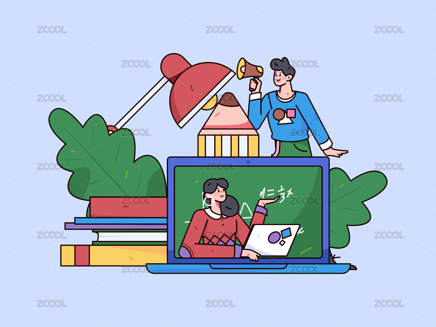 在线教育网课学习插画老师直播教育学生海报